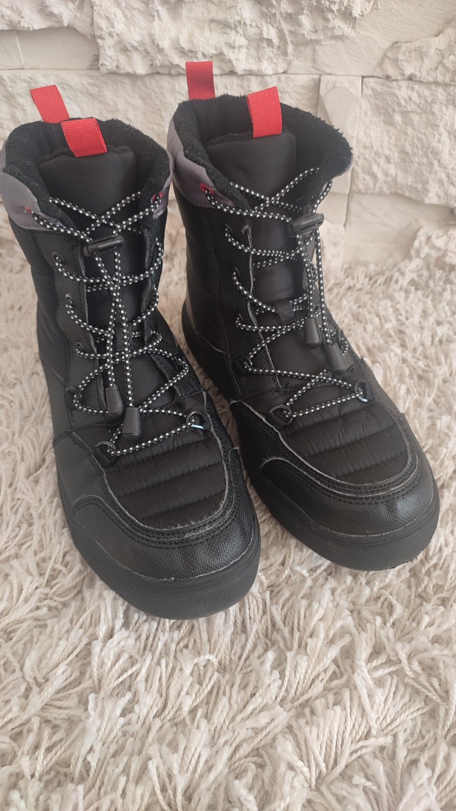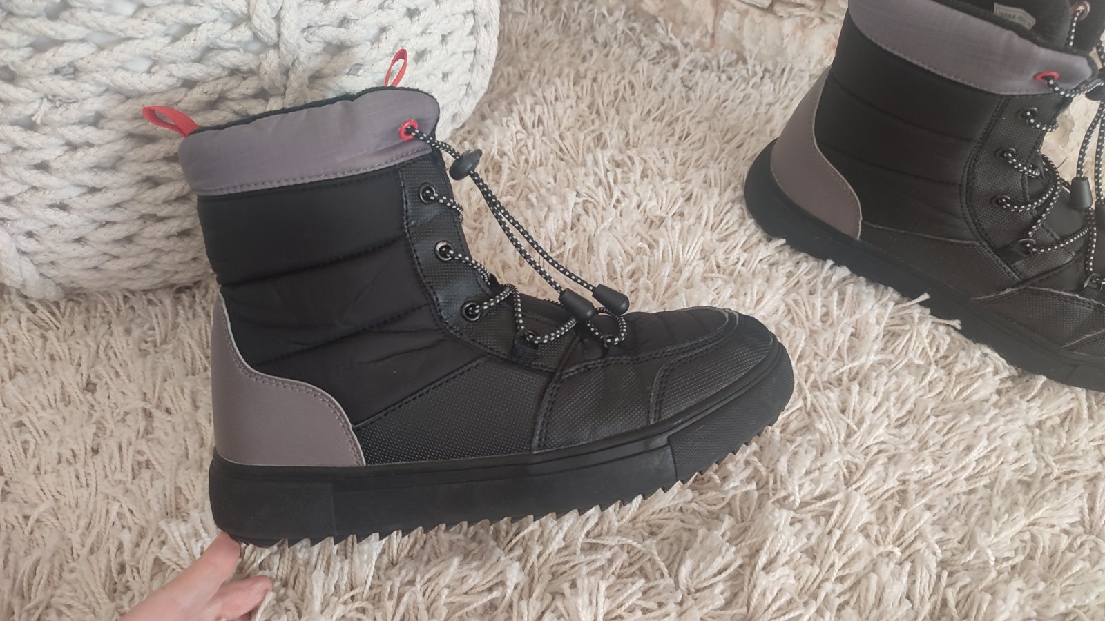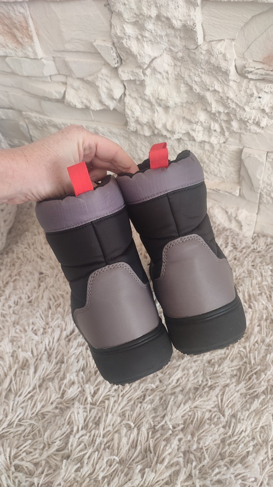 Ponukam zateplené topánky , snehule, sú nepremokavé, obúvajú sa nasuchnutim nohy do topánky. Šnúrky sú pružná guma, s brzdou. Pre ľahšie obuvanie, putka . Sú super, my sme využili max 3 krát, nemali sme u nás vôbec sneh a mali sme toho veľa.