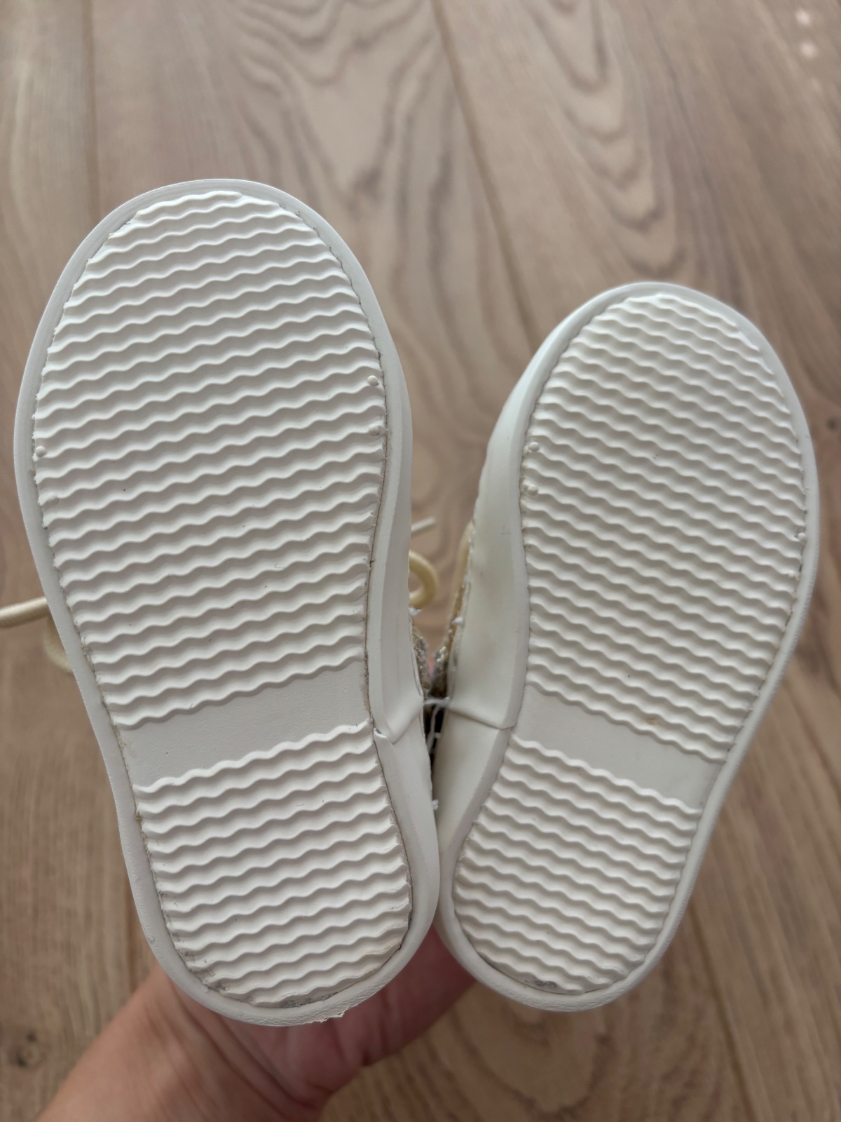 Celokožené tenisky. Mali sme obuté asi 2x, no aj napriek tomu sú z jednej strany troškičku čuchnuté. VD 11,5 cm.