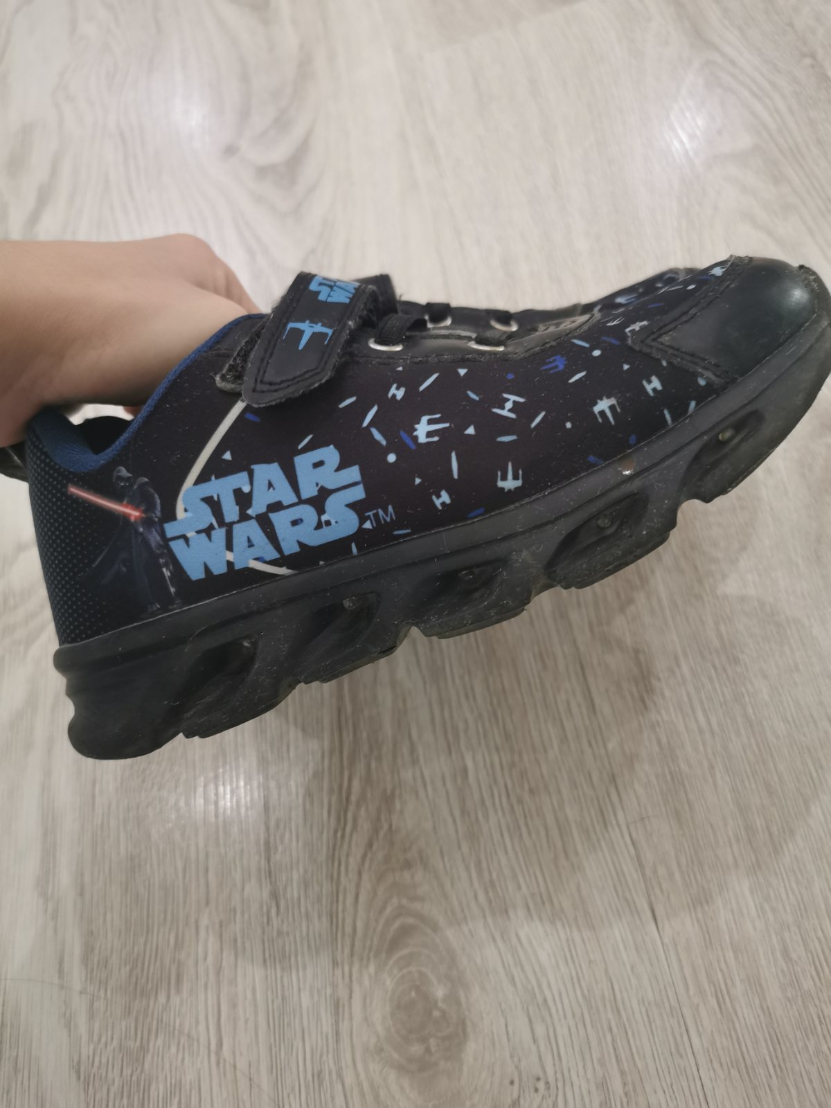 Tenisky blikajúce Star wars, kupované v CCC. Veľkosť 32, tenisky v dobrom nosenom stave, poškodenie odfotené, viď menšie škrabance vpredu na 1 topánke.V