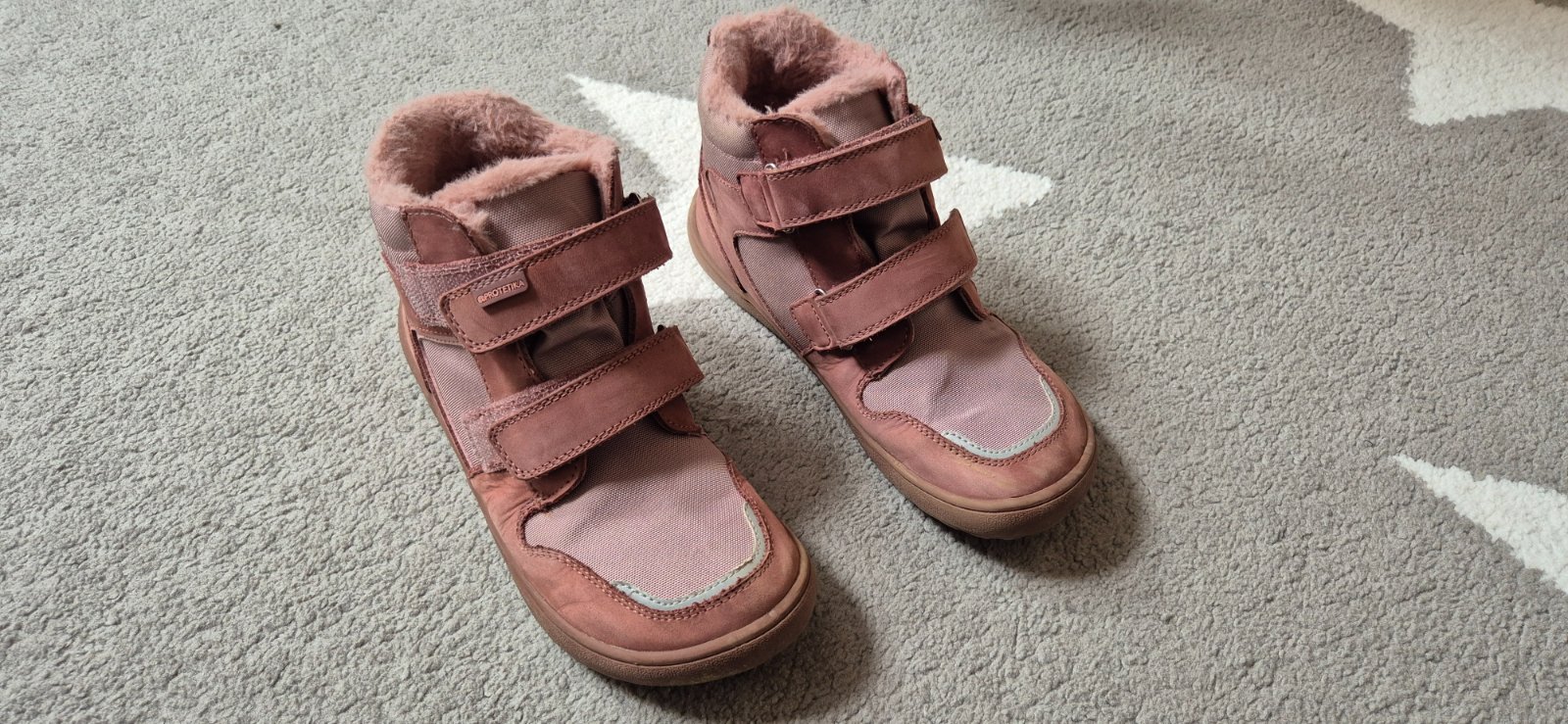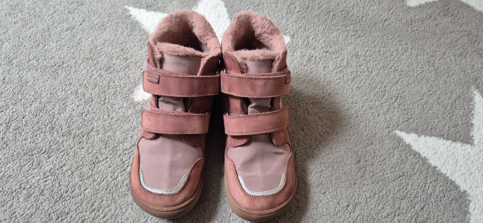 Úplne sme zabudli na tieto topánky, našla som ich až po zime. Čiže úplne nové, nenosené. Veľmi teplé, nepremokavé, na suchý zips. Vložka vyberateľná, 23cm. Cena 35€ osobný odber. Pri odoslaní + 5€ ...