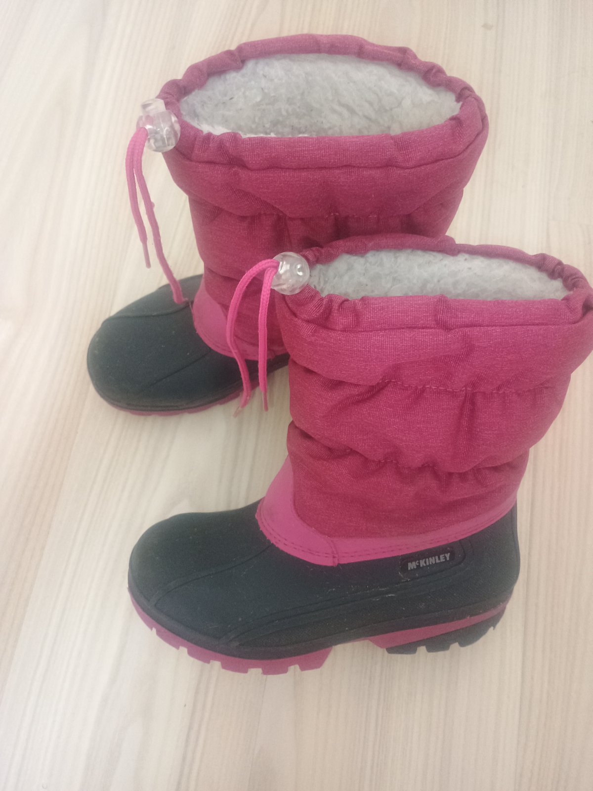 Predam malinko nosene snehule McKinley. Maju iba malu chybicku krasy- na jednej su ruzove ciarky a a na druhej modre. Na funkcnost nema vplyv. Vyborne do snehu a slapkanice. Velkost 32/33, vd 21.8cm