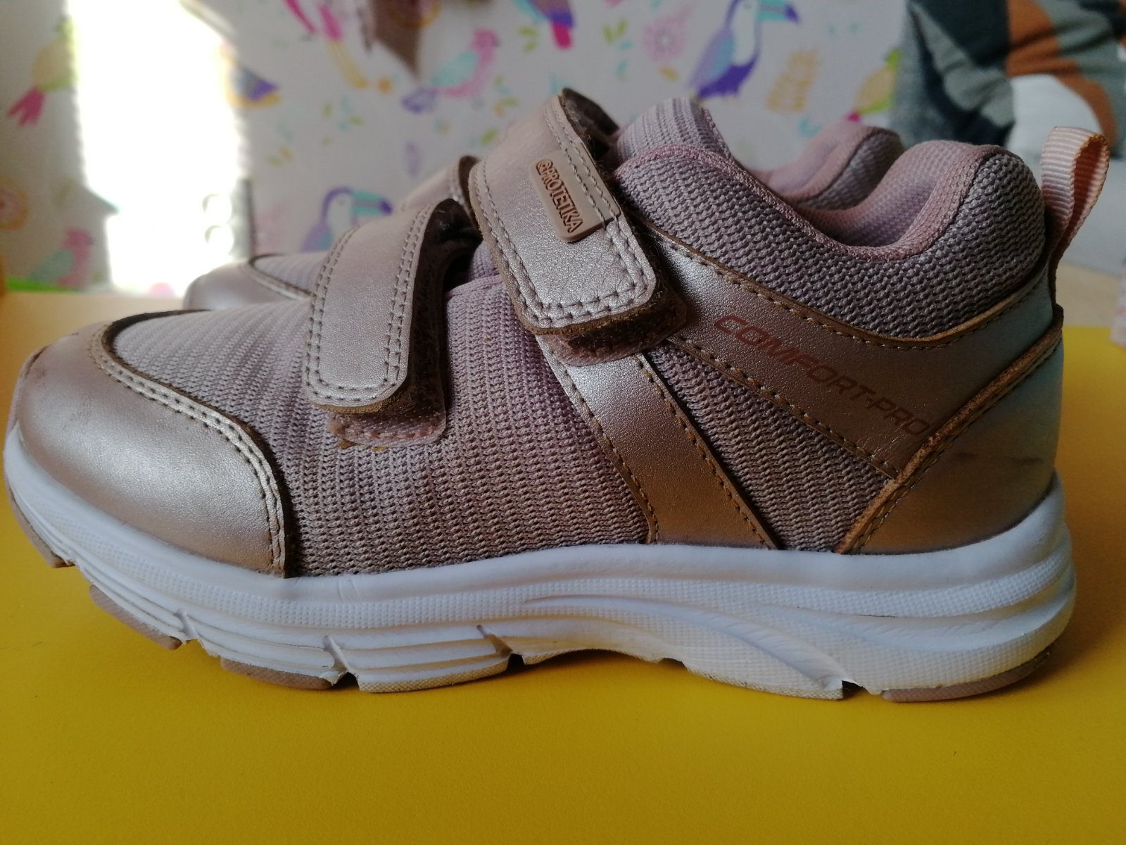 Ľahké botasky staroružovej farby, vnútorná dĺžka 18cm, strih na úzku nožičku, výborne sa nosia. Žiaľ na špičkách sú oškreté, cena preto znížená, pôvodná 40eur.