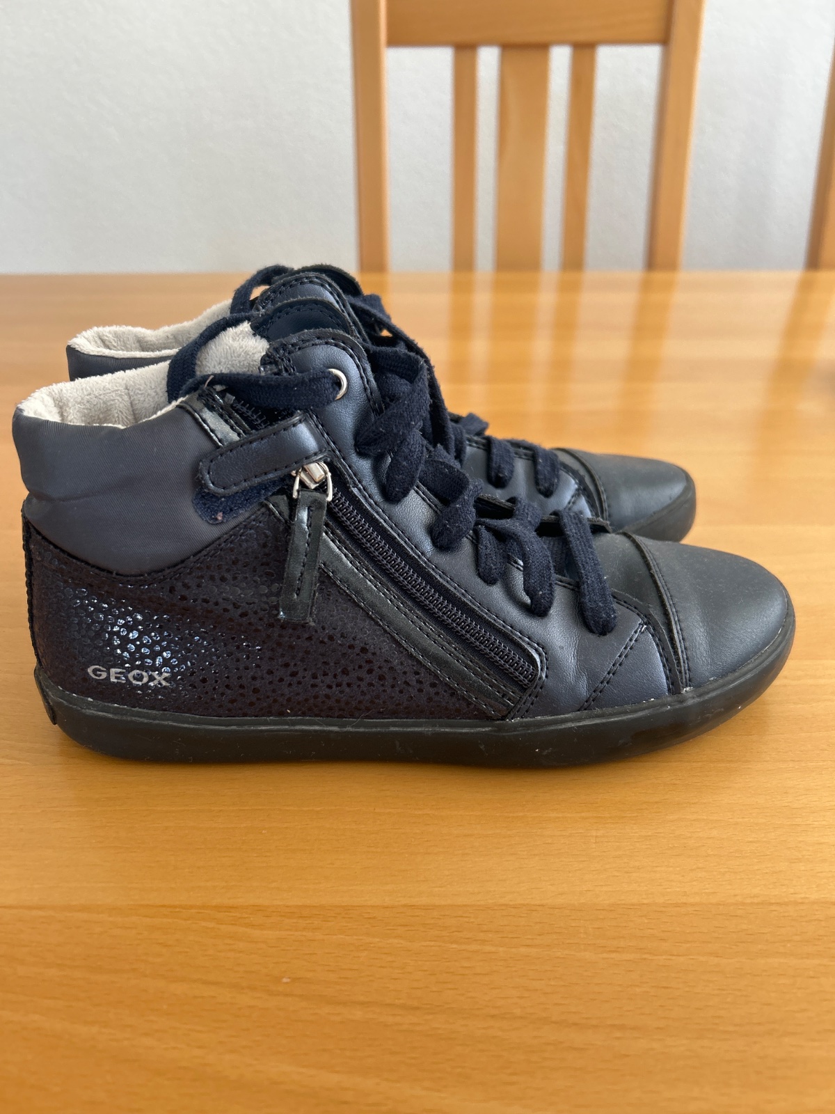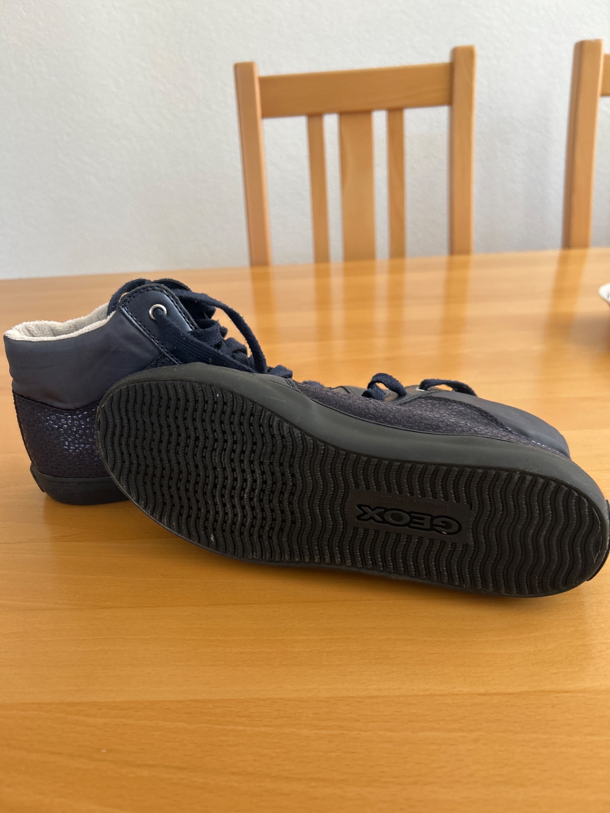 Kvalitné GEOX topánky. Majú známky nosenia (viď. Foto - odretá špička - no nie odlepená, zošúchaná ekokoža na päte pri nápise GEOX, malé vydratie vo vnútri na päte), suché zipsy držia dobre. Po dvo...