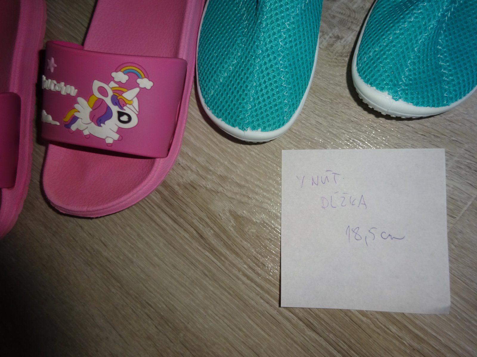 Topánky do vody (decathlon) č. 30 , šľapky (vnutorne dlžky su na foto). Na donosenie v tej veľkosti aj botasky.