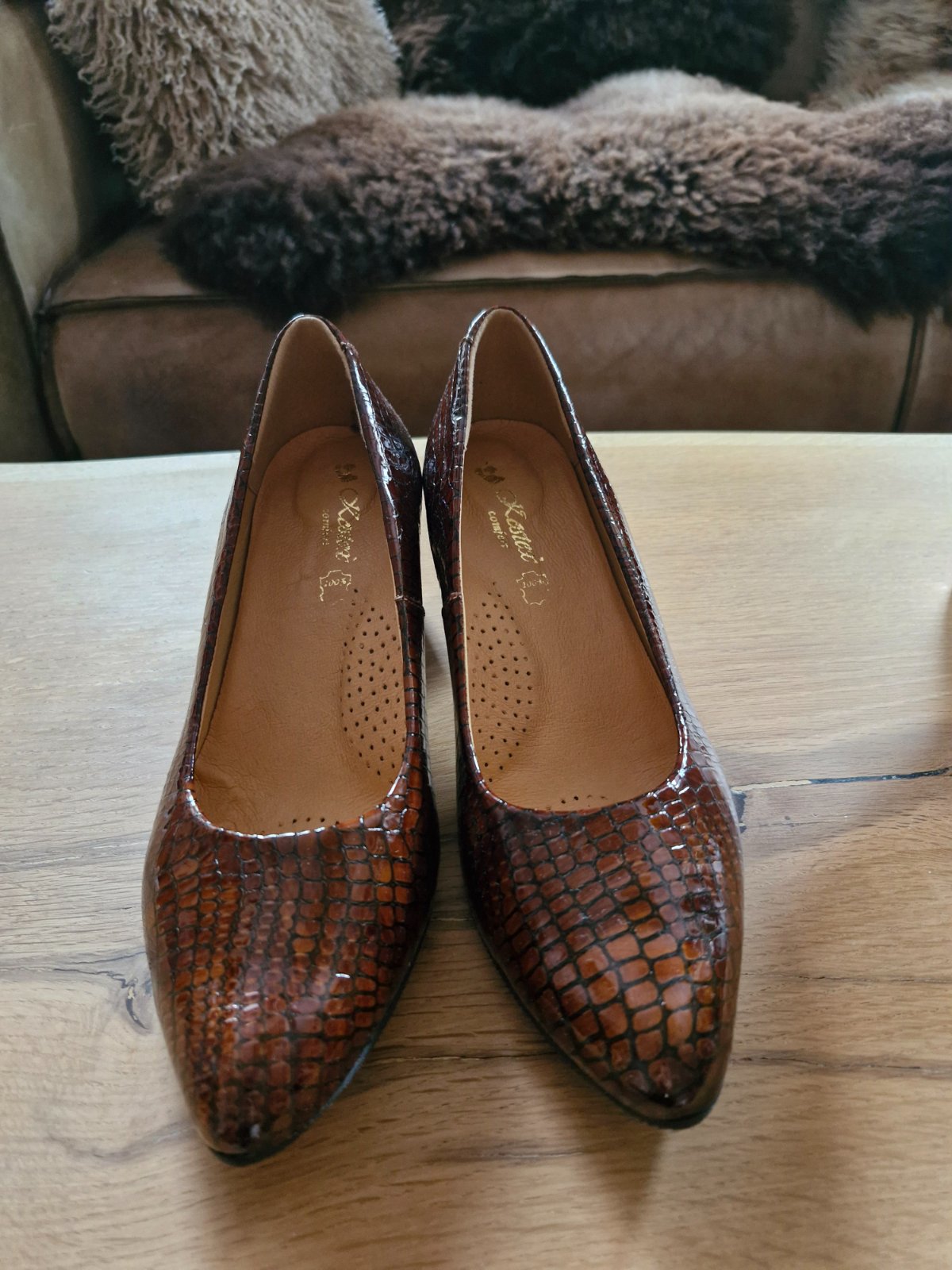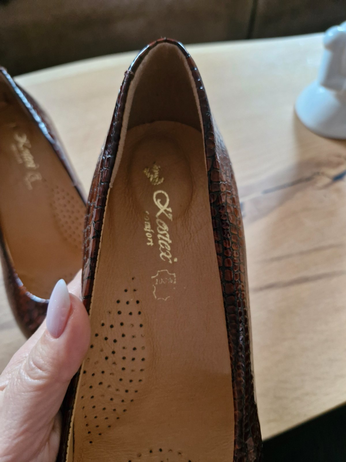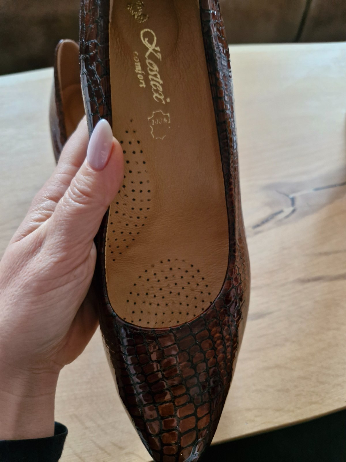 Celokožene, vnutro vystlane kozou s odvetranim a makkymi vlozkami na celodenne komfortne nosenie. Pohodlny stabilny opatok.
