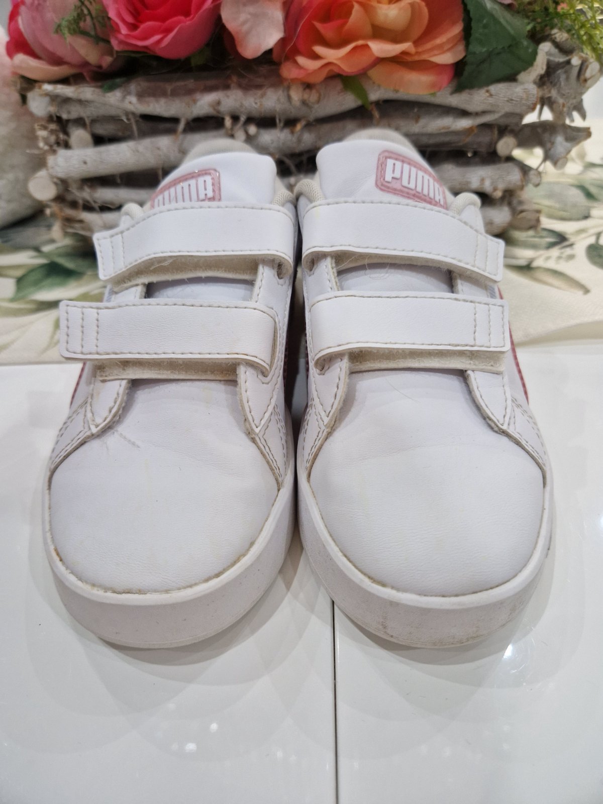 Biele tenisky Puma, ako nove. Obute par x, syncek nestihol vynosit. Top stav. Vd 21 cm. Non marking.
