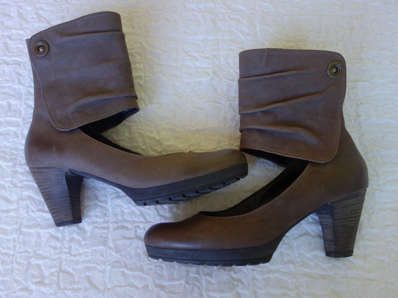 Kožené kotníkové topánky zn. Hogl, veľ. 5½, sedia aj na veľkosť 39, vnútorná dĺžka 25cm, opätok je stabilný - 7cm vysoký. Výška topánky meraná vzadu - od podlahy 23cm.