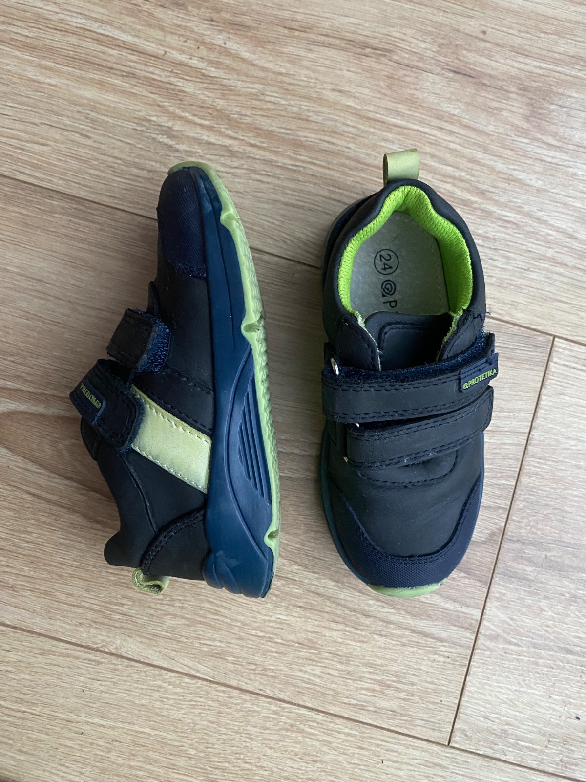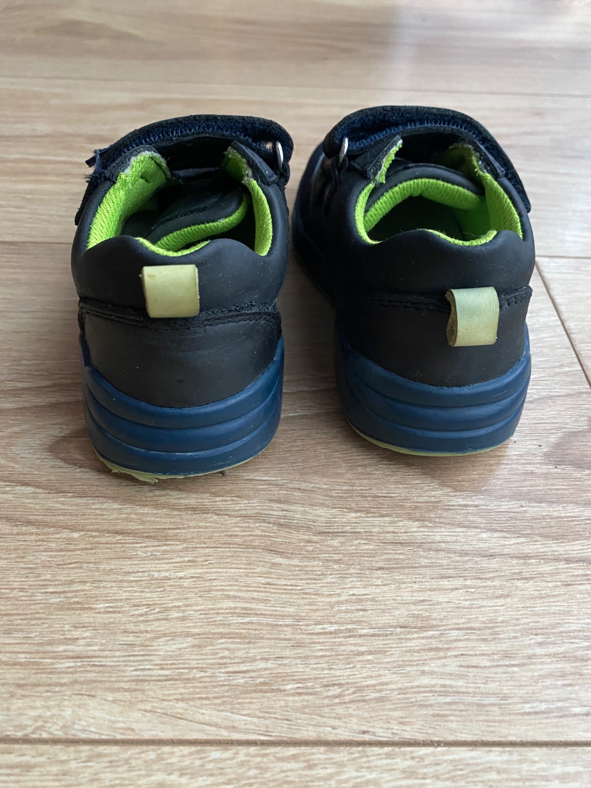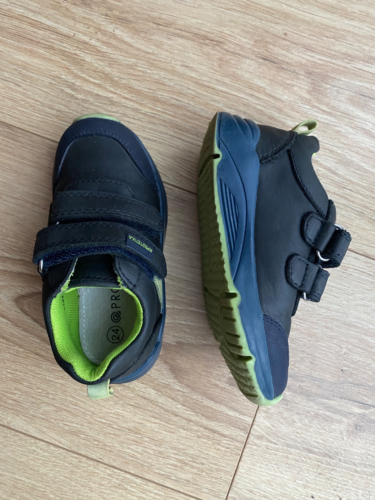 Fešácke topánky obuté asi 5x. Synček mal svoje jedny oblúbené, takže minimálne nosené. Vhodné ako prechodná obuv, zvonka koža, naimpregnovaná, nepremokavá. VD 15,5, viď obrázok.