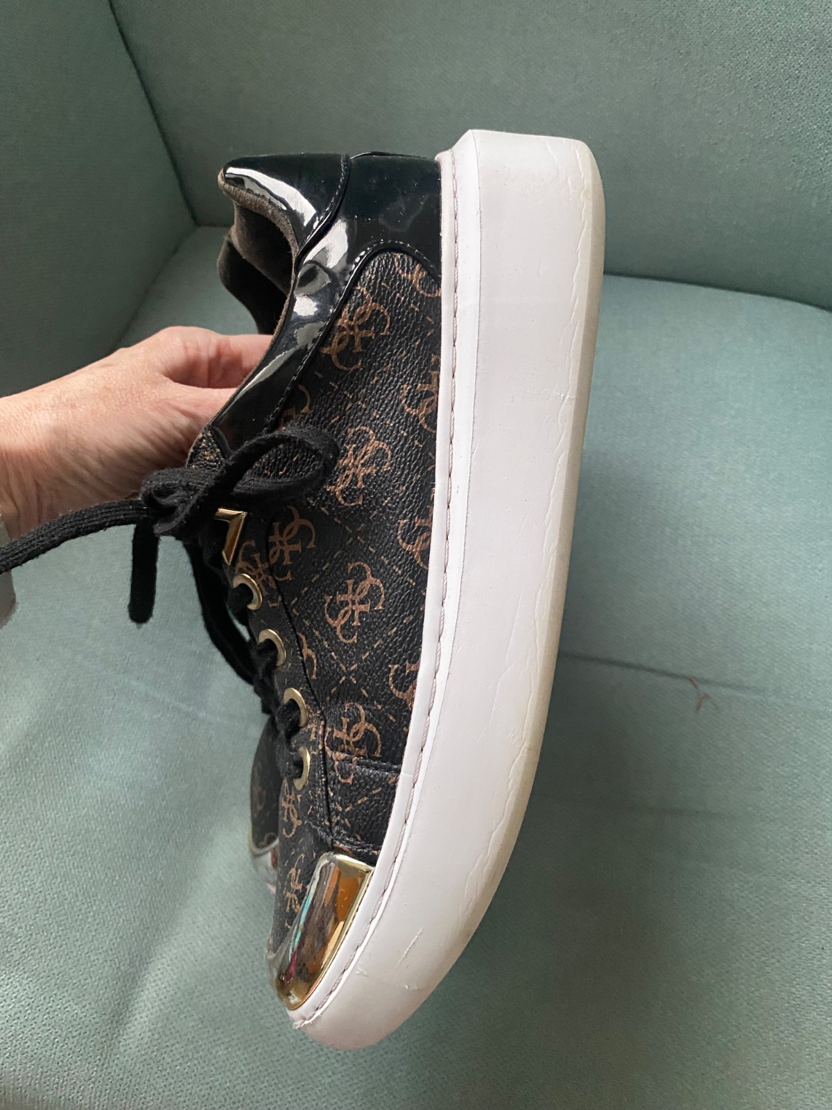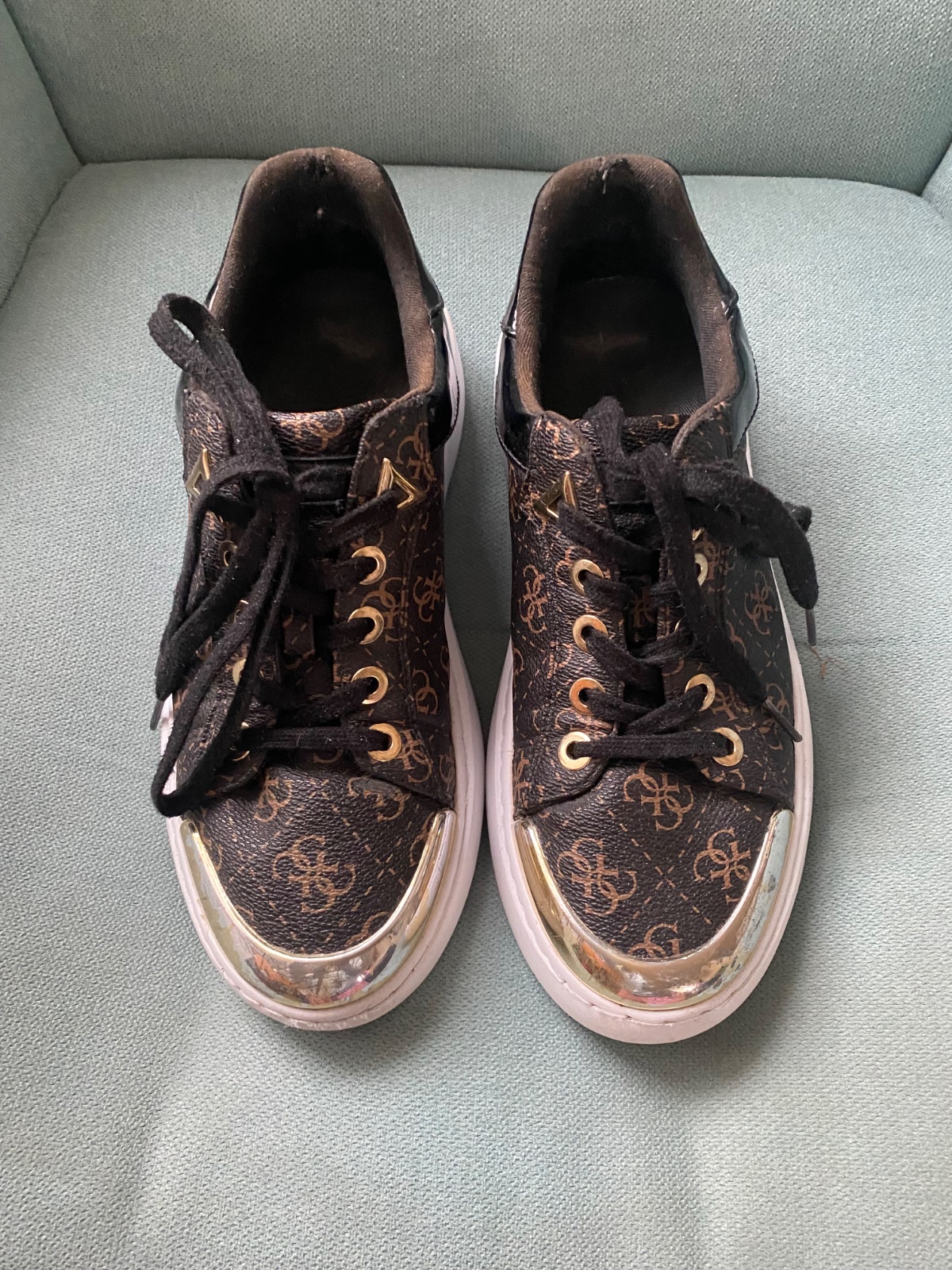 Raz obute tenisky guess, nesadla velkost, vnutorna dlzka 25,5cm. Velkost je pisana 38, no sedi skor na 39. Povodna cena 96€. Prikladam fakturu, su stale v zaruke.
