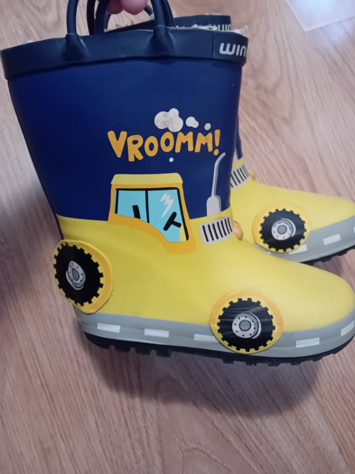 Chlapčenské gumáky modrej farby s motívom dinosaurov. Gumáky sú z mäkkej gumy, vďaka dvom uškám na vrchu gumakov si ich zvládne obuť každé dieťa.Vložka v týchto gumakoch je rovná a vyberateľná. Vel...