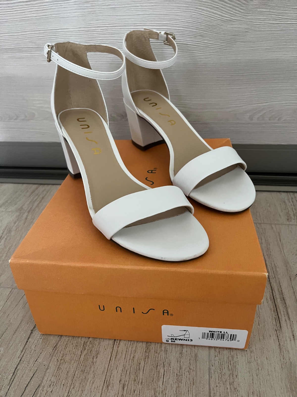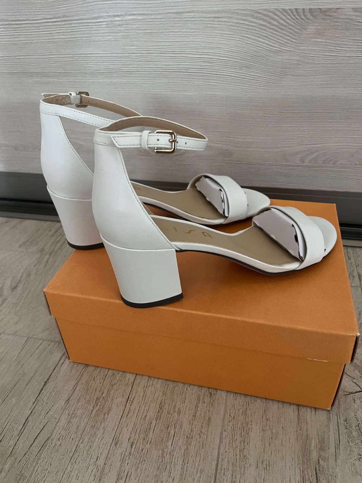 Krasne pohodlne biele sandale! Znacka UNISA a velkost US 9 tak europska 39-40. Nenosene iba raz pouzite na fotenie/ako nove. Cena 12€ + postovne.