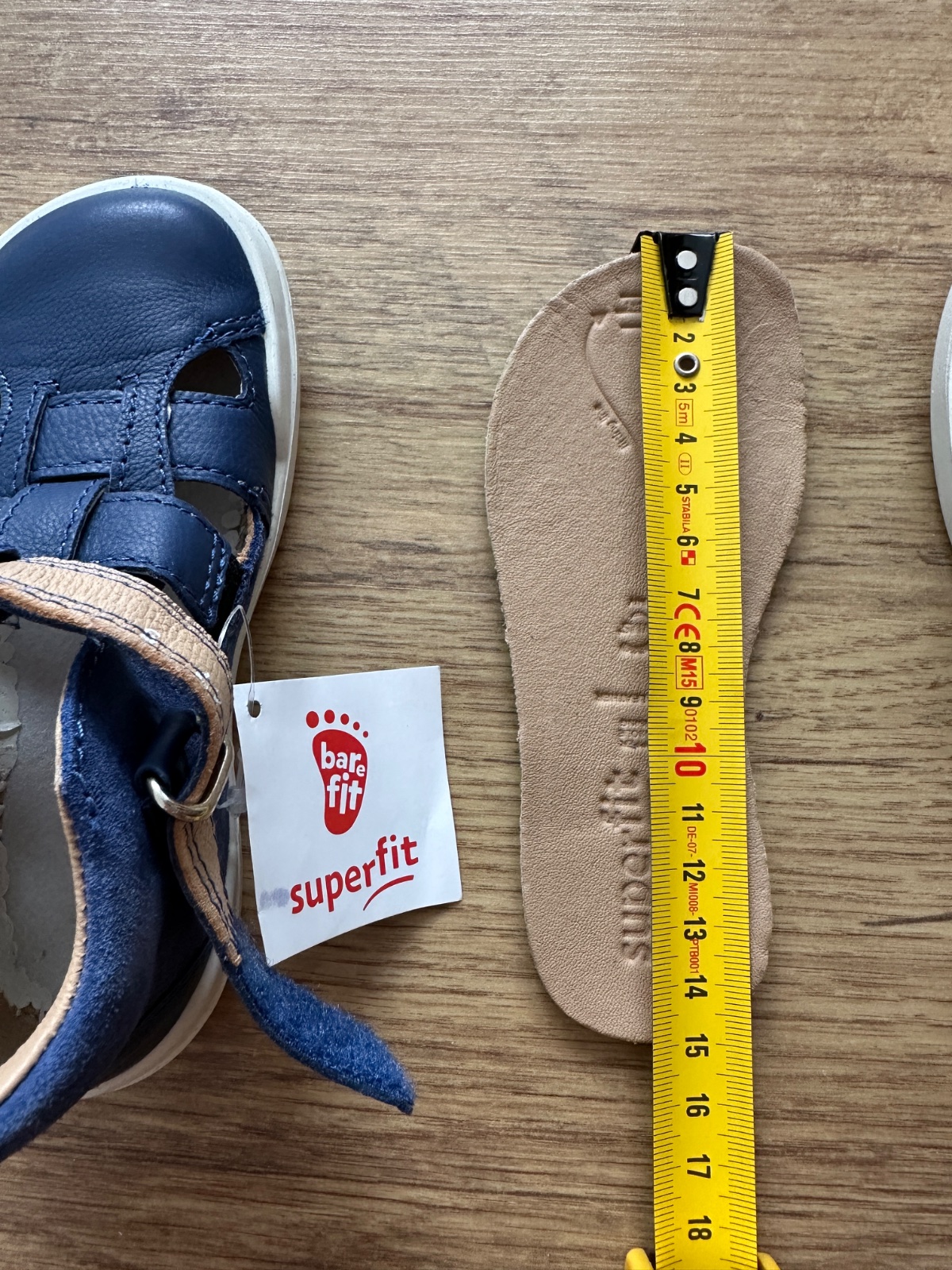 Predam kozene sandalky Superfit, prijemne, ohybne, vzdusne. Bezne znamky pouzivania, tyrkysova latka je trochu osuchana, na prvy pohlad to na nôžke nie je vidiet. Vnutorna dlzka 14,5 cm.
