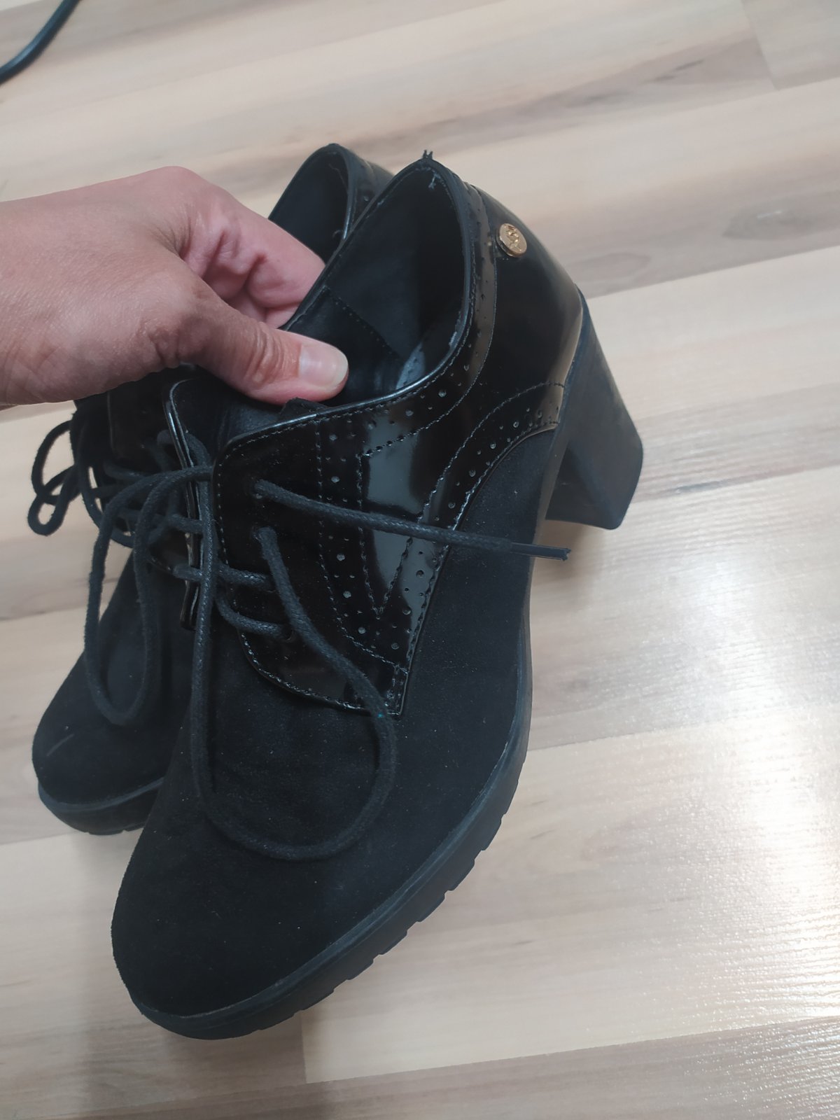 Krasne semisove lodicky s malou maslickou. Raz obute na chvilku. Ako nove. Podpatok ma 10,5 cm a platforma 1 cm. Pre mna su prilis vysoke, nevyuzijem. Velkost 37.