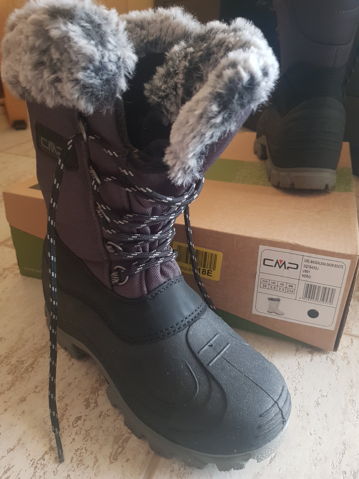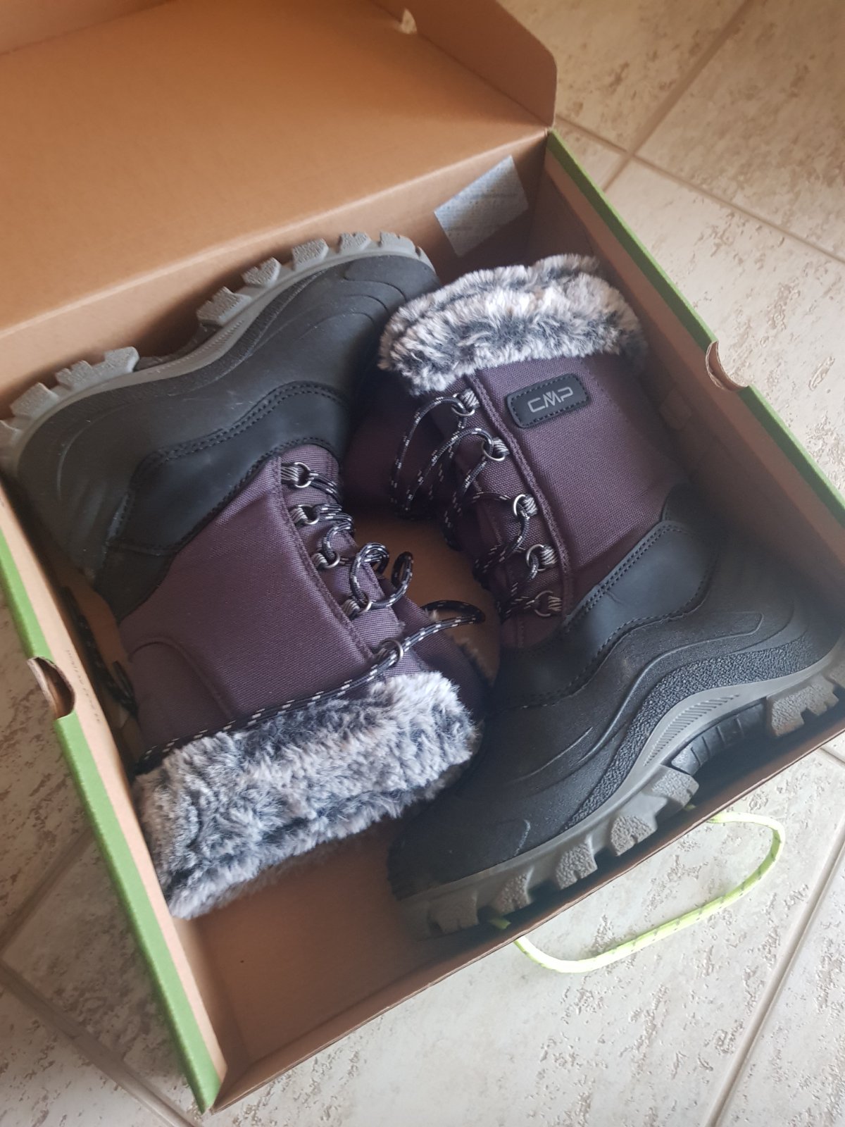 4 kràt obutè na horàch,vemii teplè,nepremokavè snehuľky po dcèrke,grafitovà s čiernou,ako novè.Veľkosť 35,ale vyhovuje veľkosti 34,zistili sme,že sù malè.Pôvodnà cema vysokà,zakùpenè v zahraničì.Cena s poštovným 27euro.