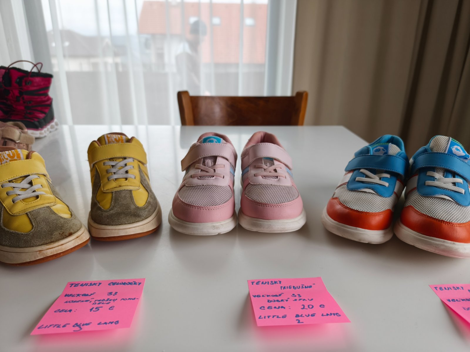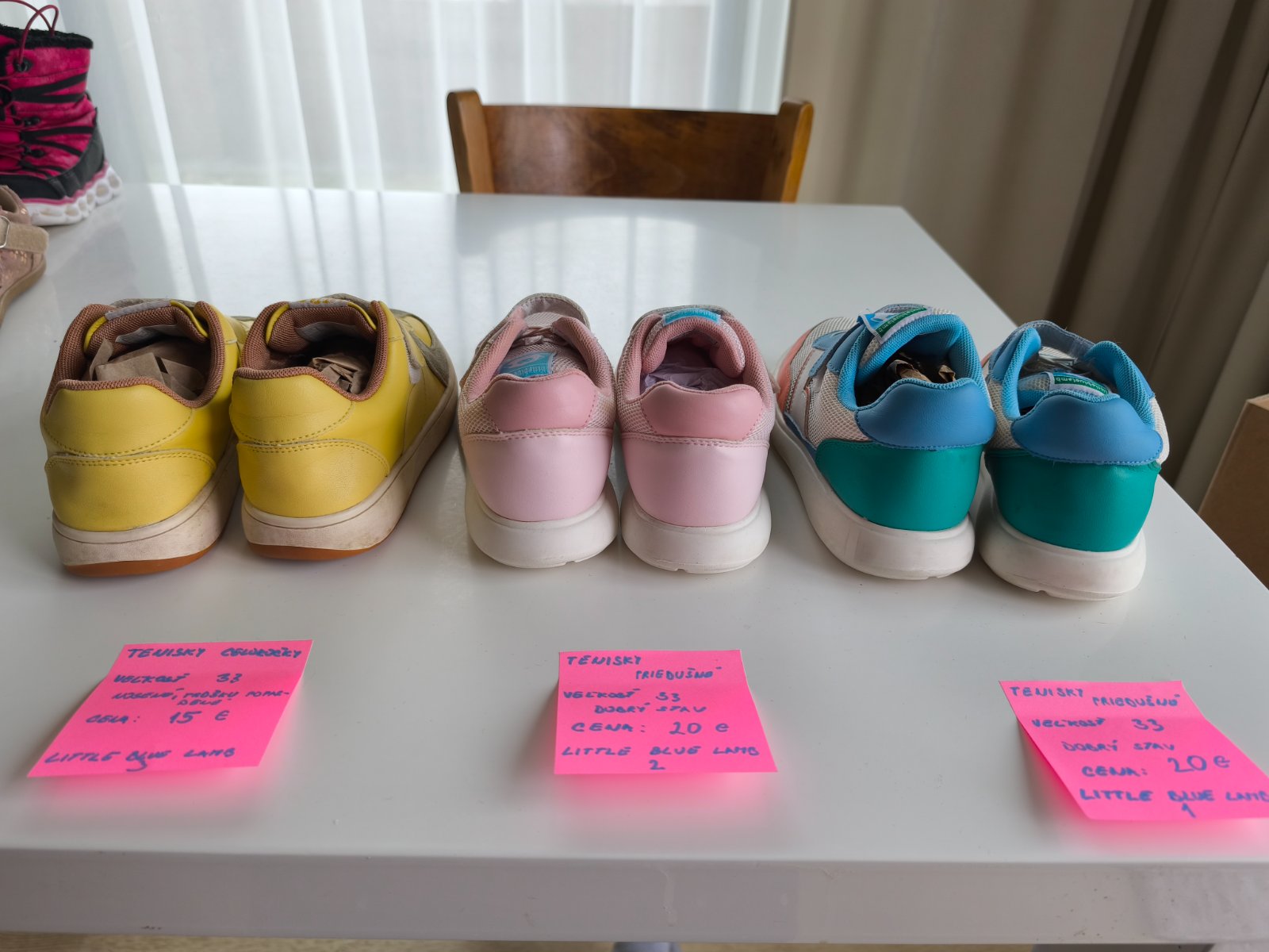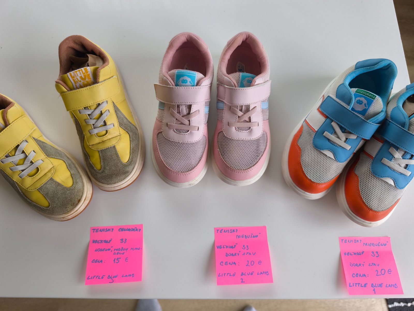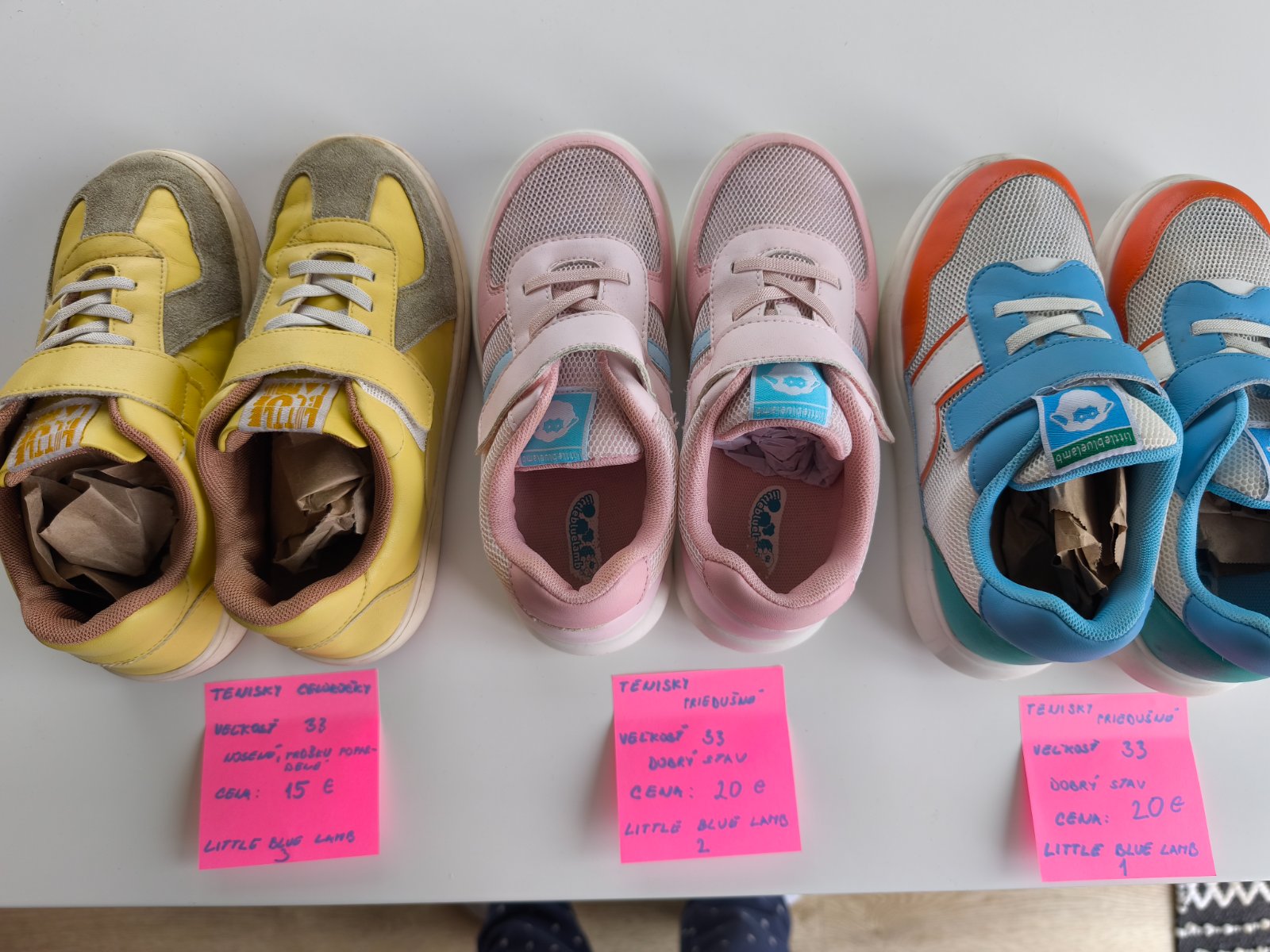 Priedušné top stav, nosené na telesnú. Žlté nosené von, prežili všetko, iba impregnácia dreva zanechala na nich trošku stopu. Neskúšala som čistiť riedidlom. Cena na lístku/ks +pošta alebo osobný odber PP/Švabovce.