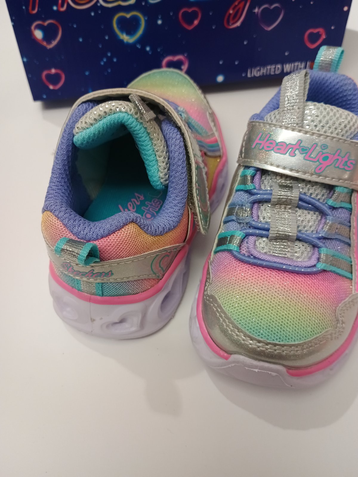 Blikajúce tenisky pre mladé slečny od Skechers sú úplne dokonalé a neodolateľné. Svetlá na podrážke sa farebne rozsvietia pri každom kroku a v tme sa ešte viac rozžiaria. Táto značka sa vyznačuje kvalitným spracovaním, luxusným výzorom a jedinečnosťou, čo ocenia hlavne rodičia, tak ako aj pohodlie počas nosenia počas celého dňa vašich detičiek. Výborné do školy, na ihrisko či výlety. Jednoduché zapínanie na suchý zips a zaväzovanie klasických šnúrok. Blikanie sa dá vypnúť a zapnúť tlačidlom na suchom zipse.