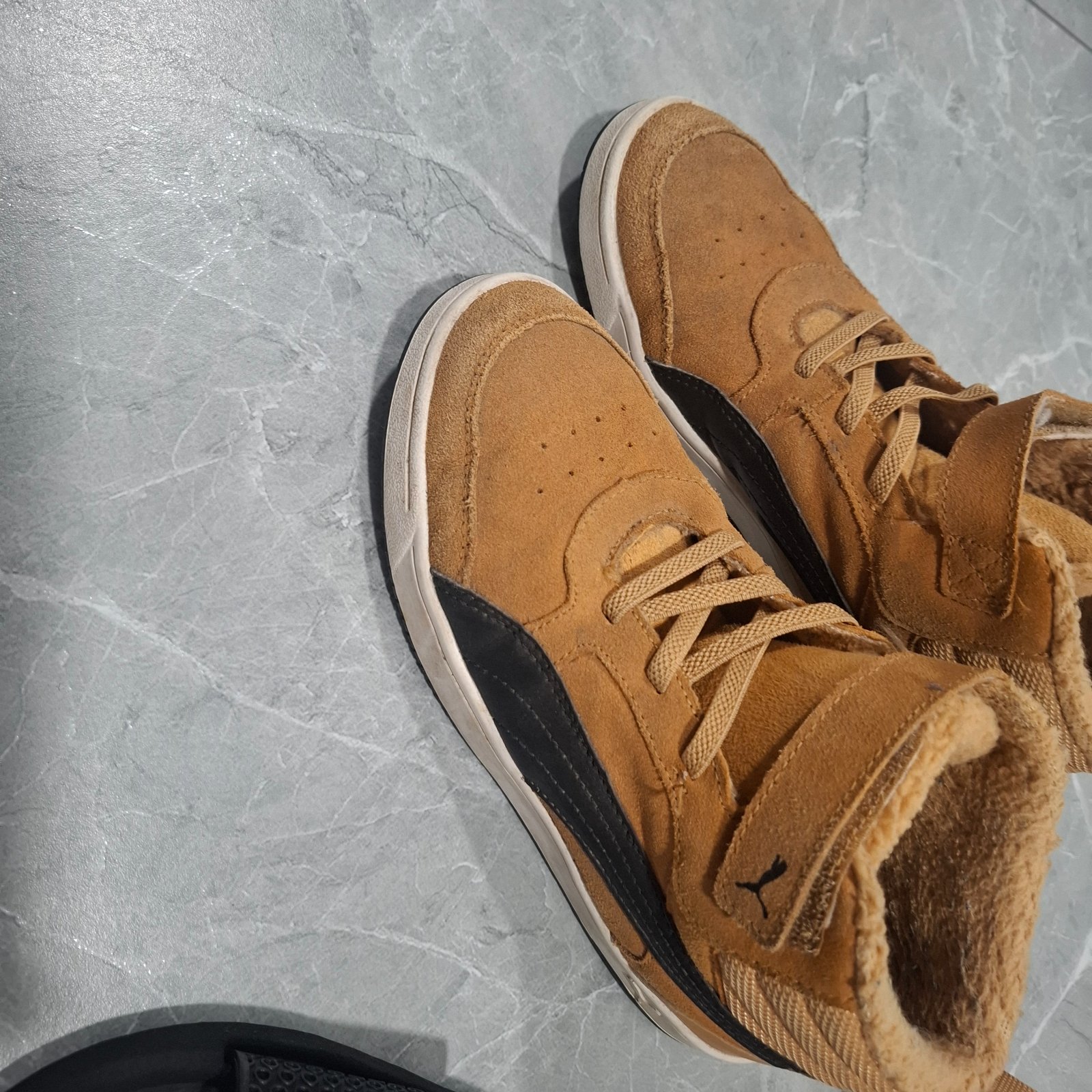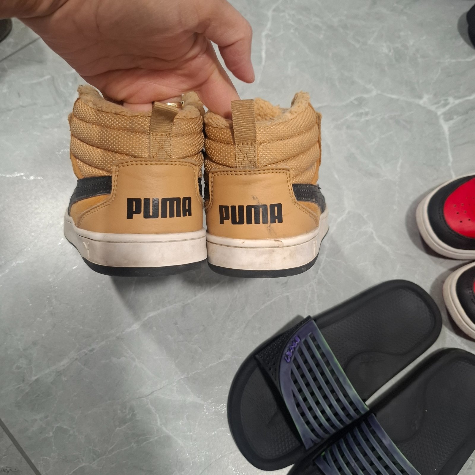 Topánky Puma oteplene, vnútro na kožušinke vidieť nosenie, ale to vždy po par noseniach, inak sú zachovalé , suchý zips drží super.v prípade záujmu môžem darovať oblečenie alebo nejakú obuv