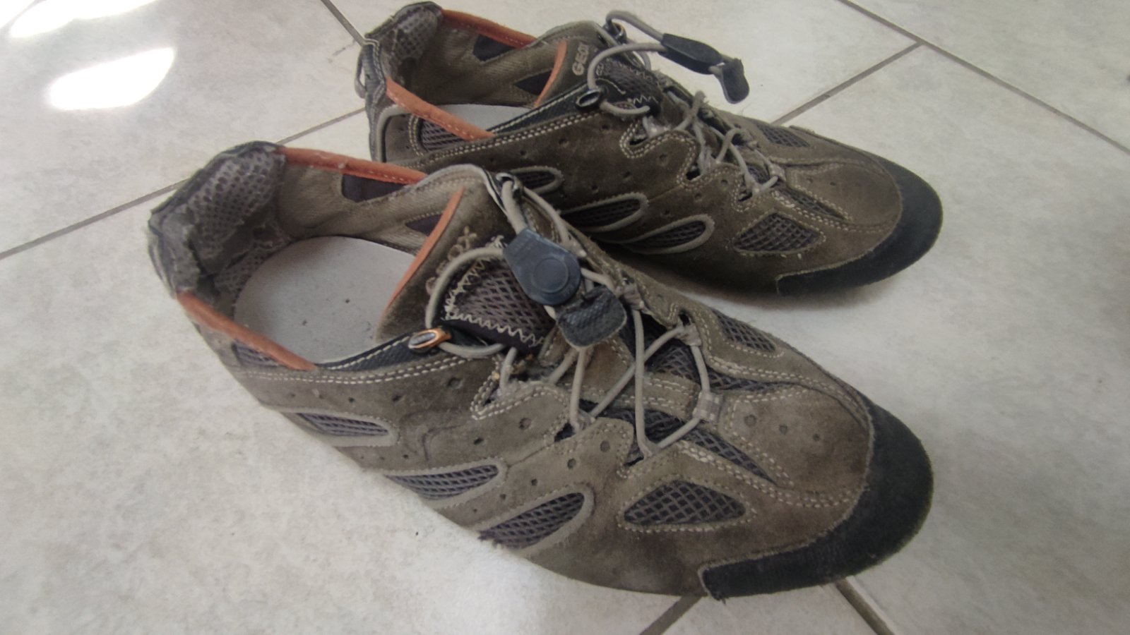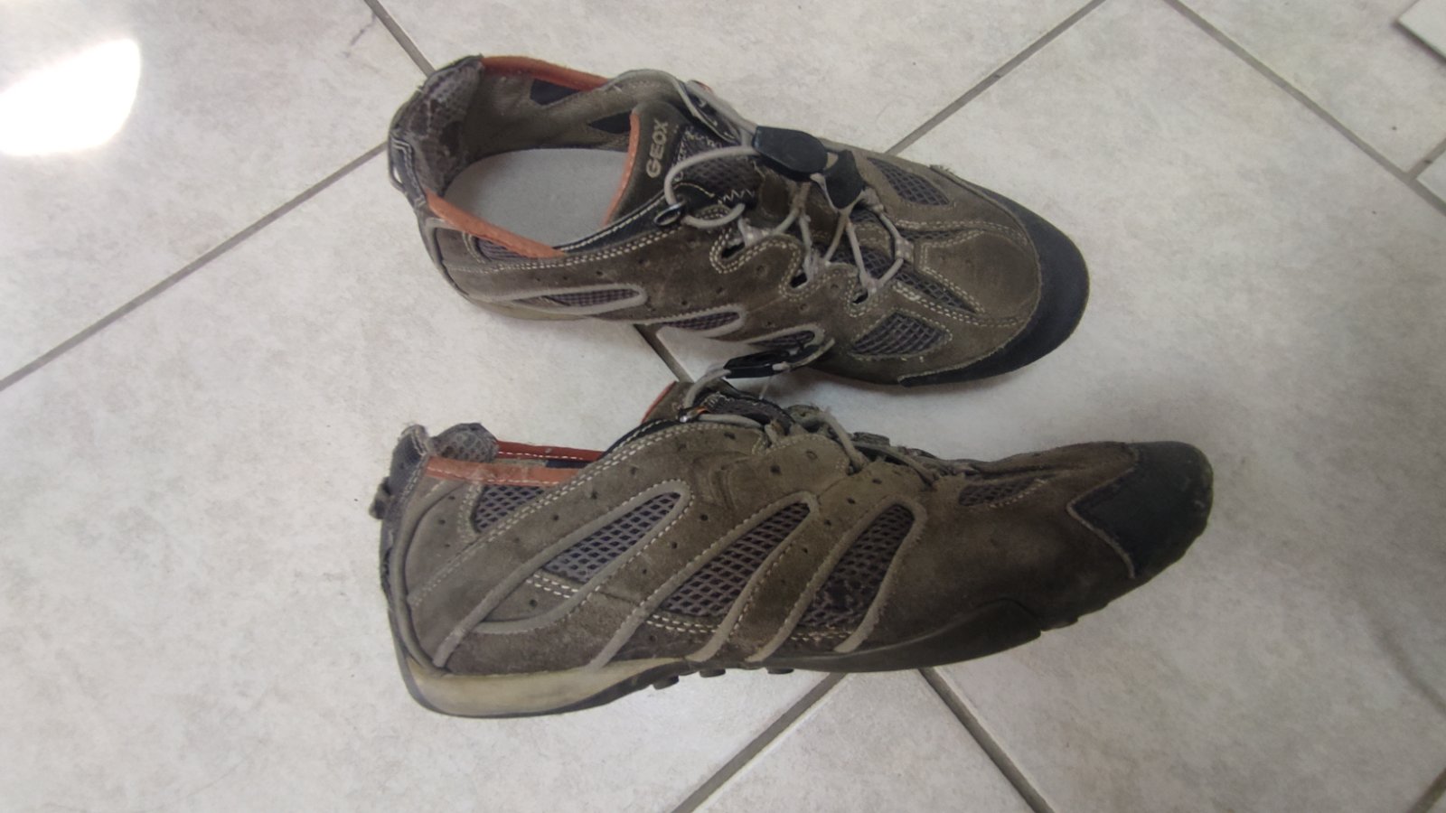 Nové obuté iba raz, ale tým, že je veĺkosť 41,5 tak synovi nesedia lebo nosí veĺkosť 42. Vnútorná dĺžka stielky je 26,5 cm, pôvodná cena bola oveľa vyššia, boli kúpené v akcii.