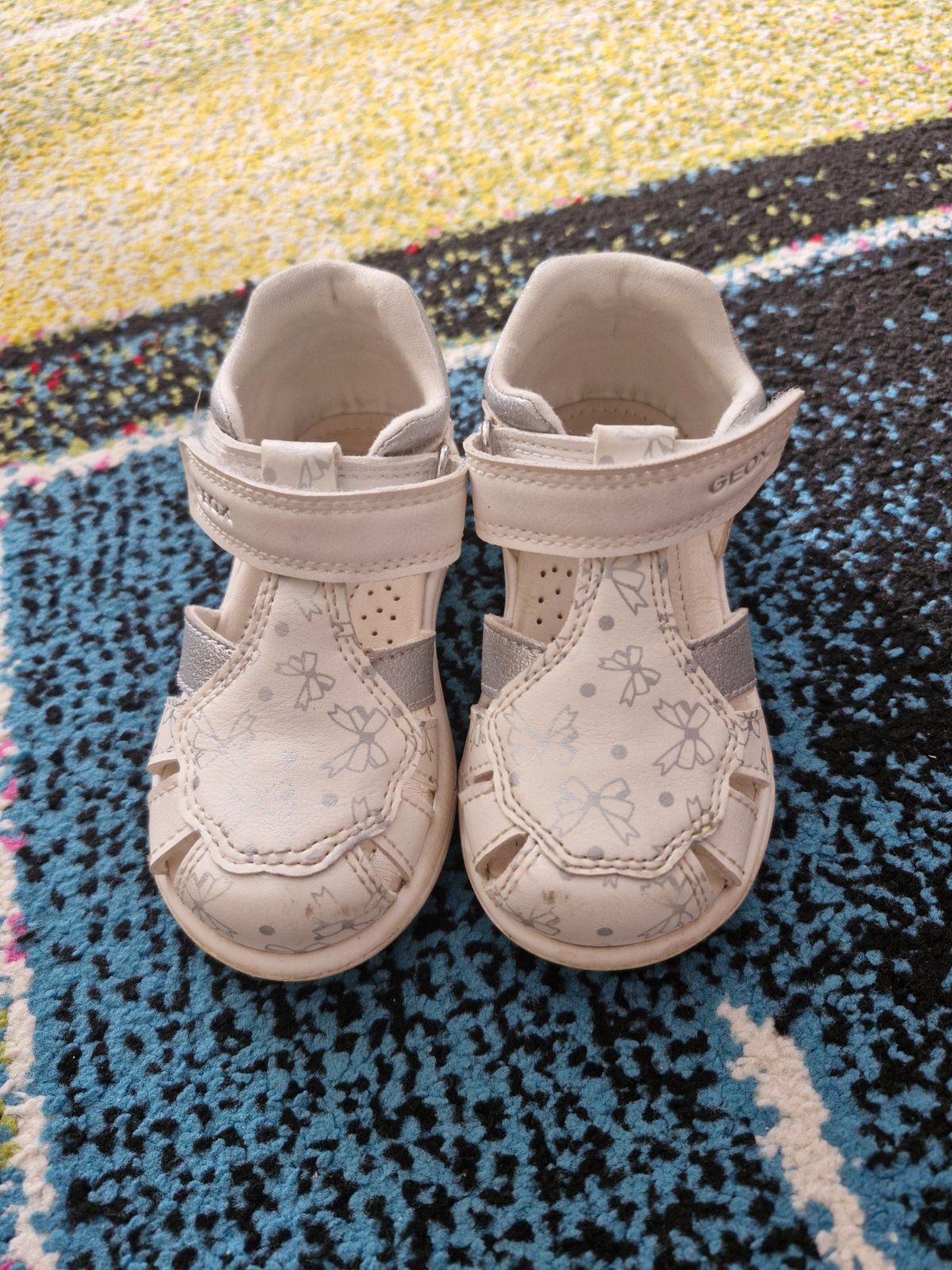 Predám krásne sandálky zn. GEOX po 1 dieťati. Nosené cca 2 mesiace na striedačku s ďalšími topánkami. Topánky sú vo veľmi dobrom stave, bez poškodenia. Podrážka je mäkká, ohybná. Farba modrá, s pot...