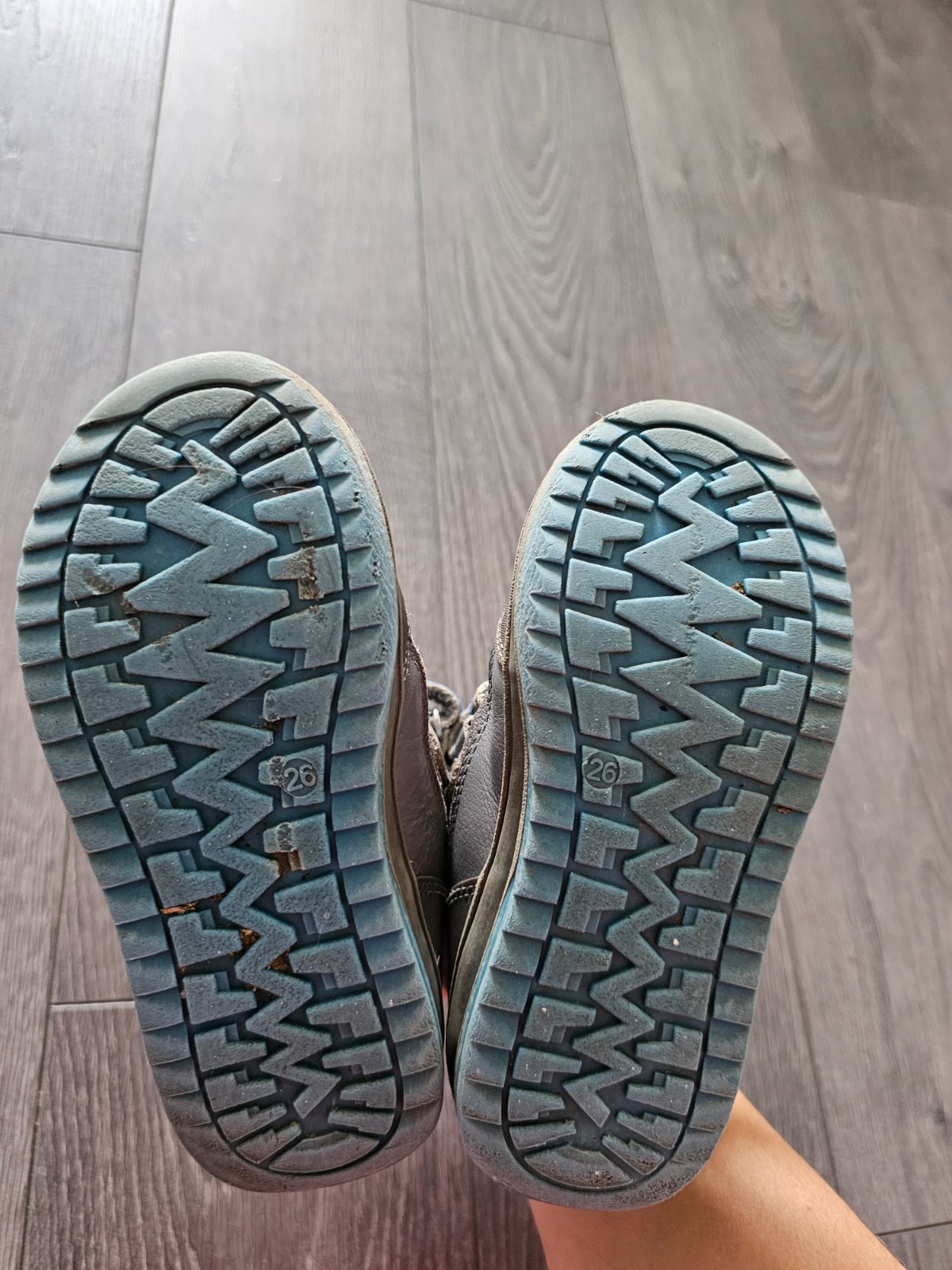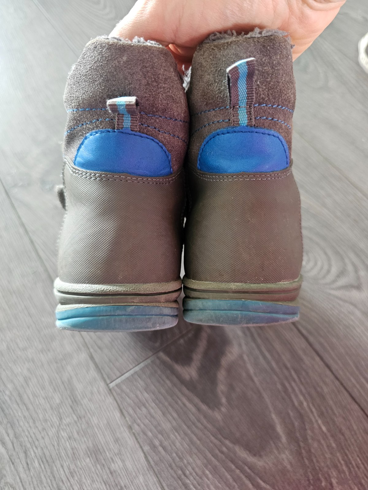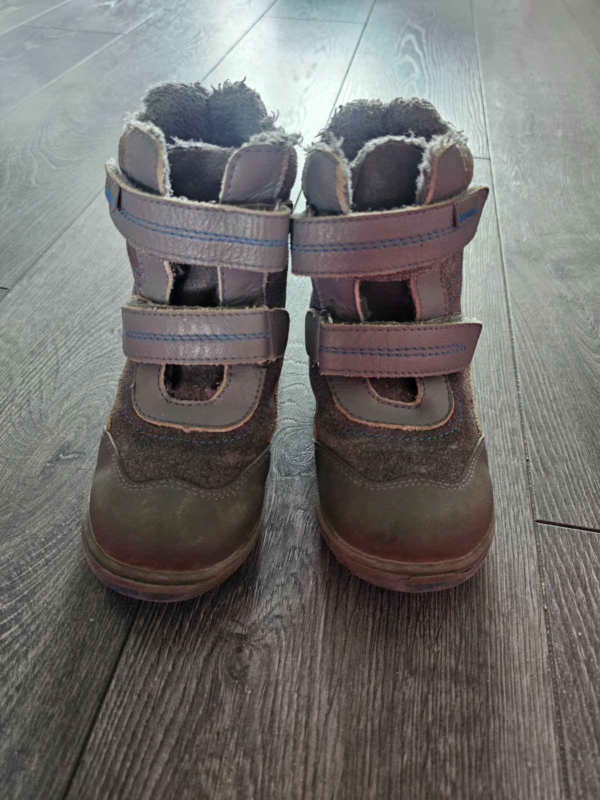 Predám zimné čižmičky skôr na suchú zimu i keď nikdy nepremokli ani na snehu..Šedá farba sa zpredu vyšuchala ale napriek tomu stále veľmi pekné. Vnút. dĺžka 16,5cm na doraz.