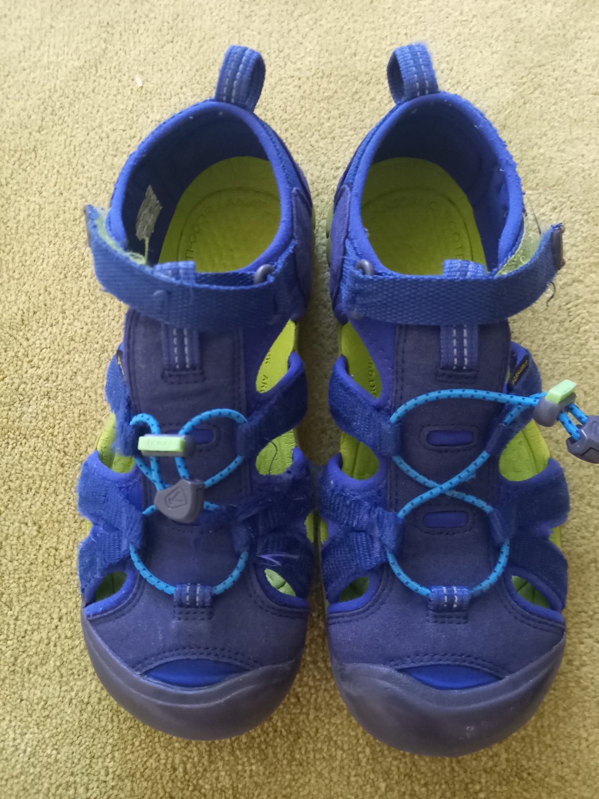 Nosené 1 dieťaťom, stav zodpoveda cene. Nemaju diery, akurat zhora su pozatahovane, niekde sa cast latky para. Noseniu nebrania, farba je pekna modra, nie su vyblednute, akurat syn ich nesetril, ma uzsiu nohu, takze ich zatahoval poriadne