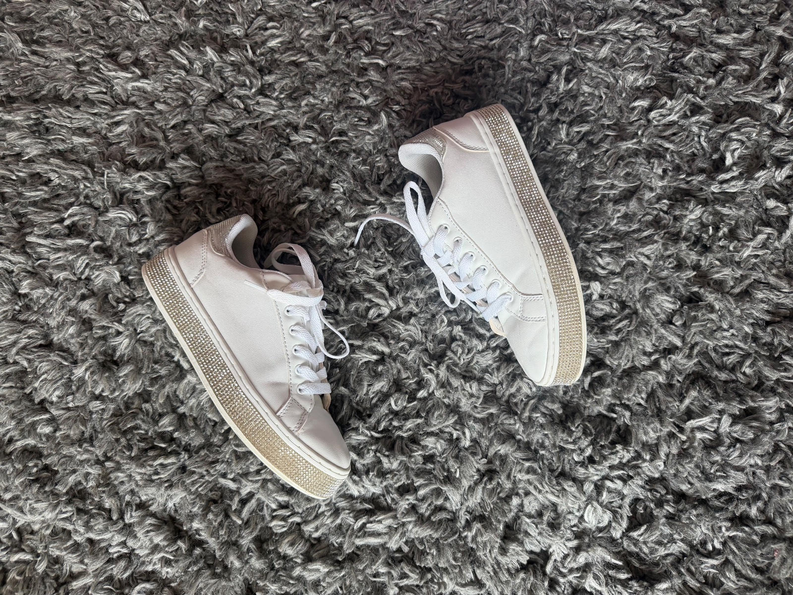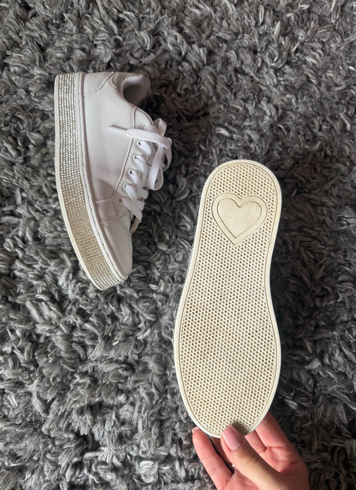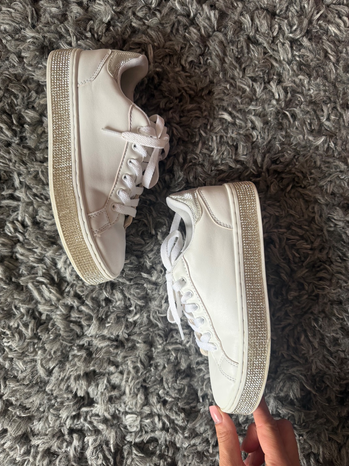 Nádherné a obľúbené tenisky s kamienkami. Krásne sa trbliecu. Dcéra ich nosila 1 sezonu, kupili sme teraz väčšie. Vn. dlzka je 22 cm. Velkost 34.