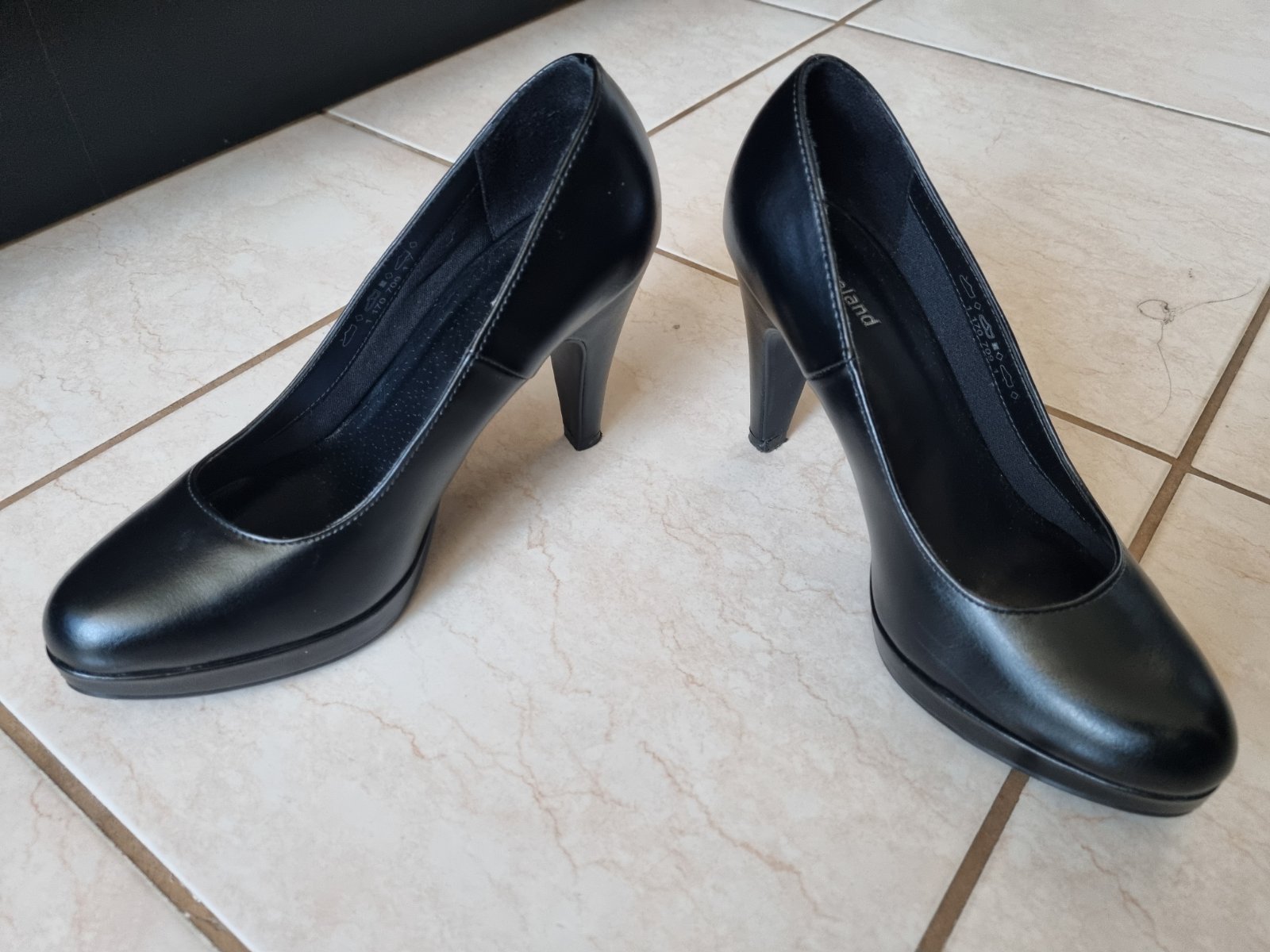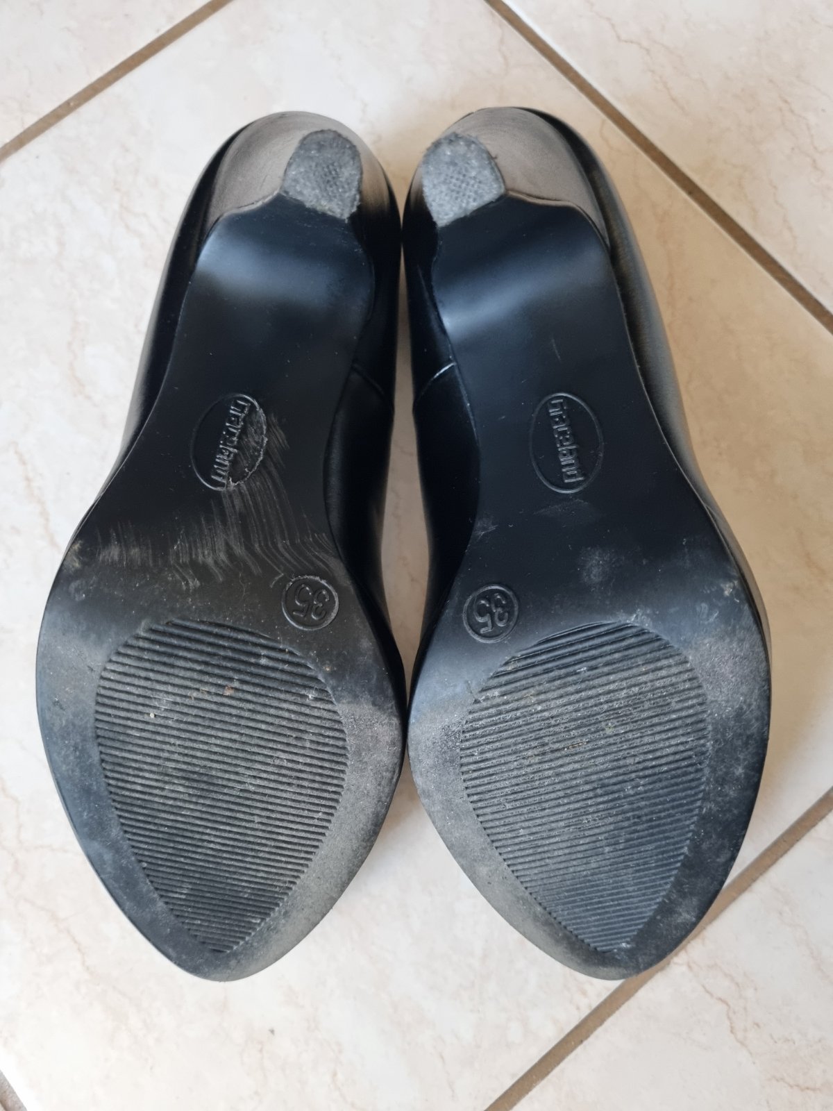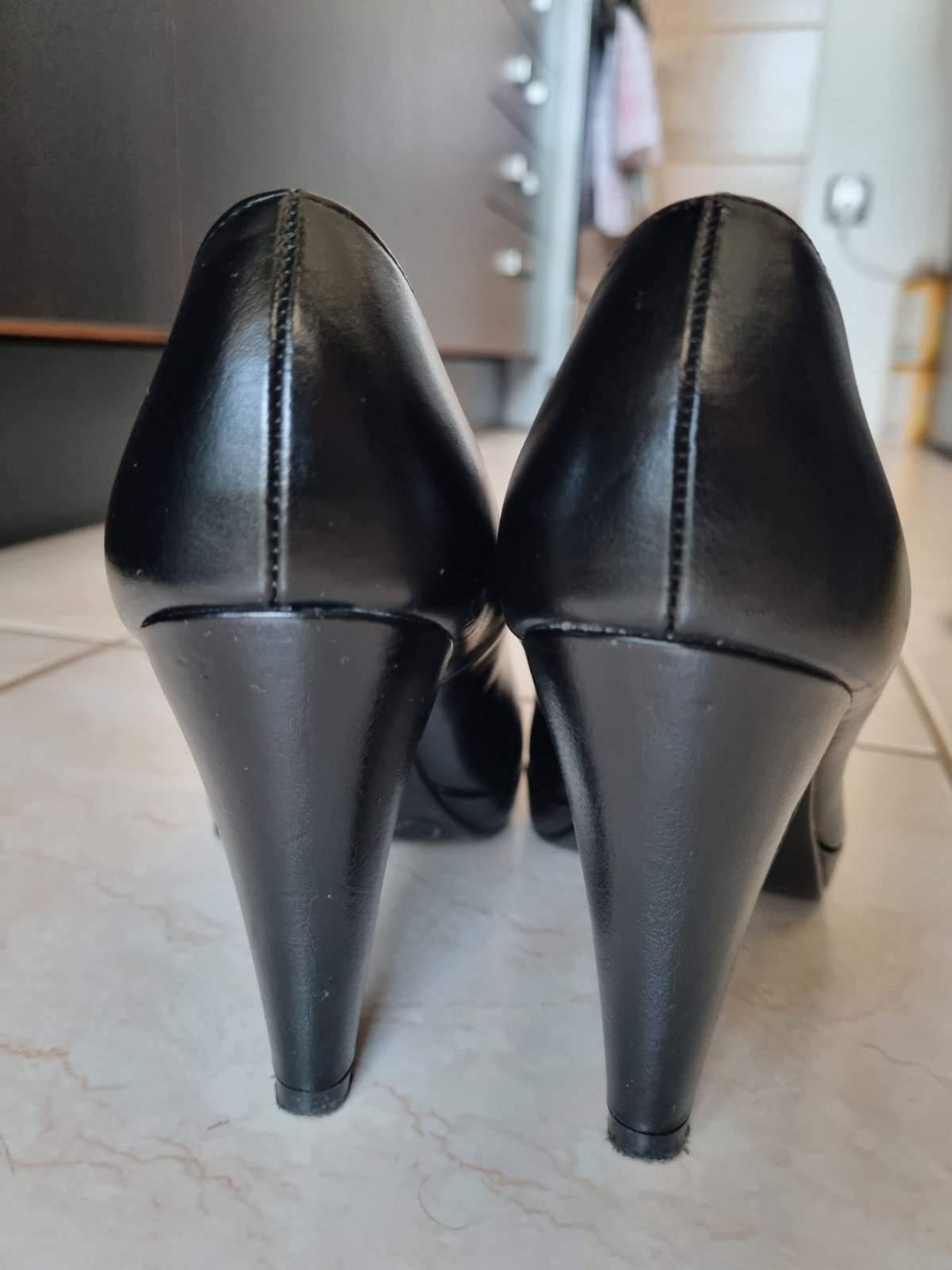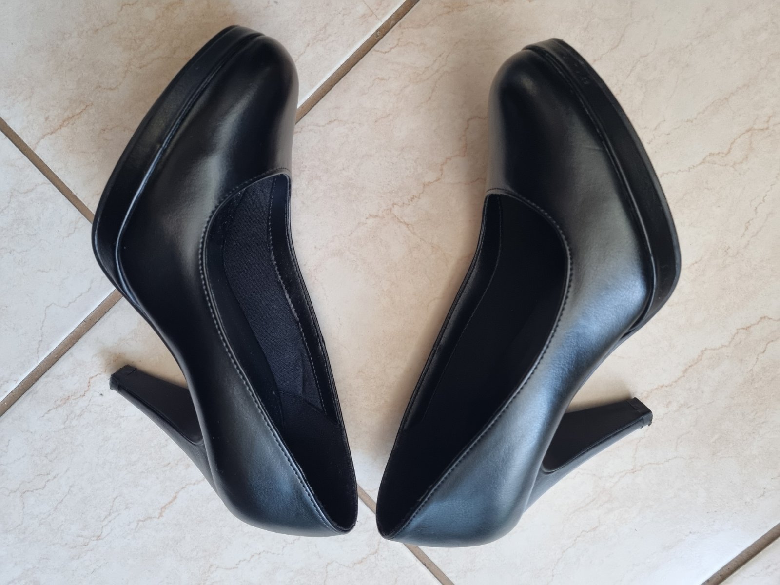 Vysoké lodičky, ktoré som mala obuté raz, maximálne dvakrát. Potrebovala som ich na jednu akciu a od vtedy sú, chudiatka, len v skrini nevyužité. Škoda ich je v skrini. Sú v takom stave ako na fotkách. Len na podrážke vidno, že boli už na chodníku. Výška podpätku 8cm, vnútorná dĺžka chodidla je 22,5cm.