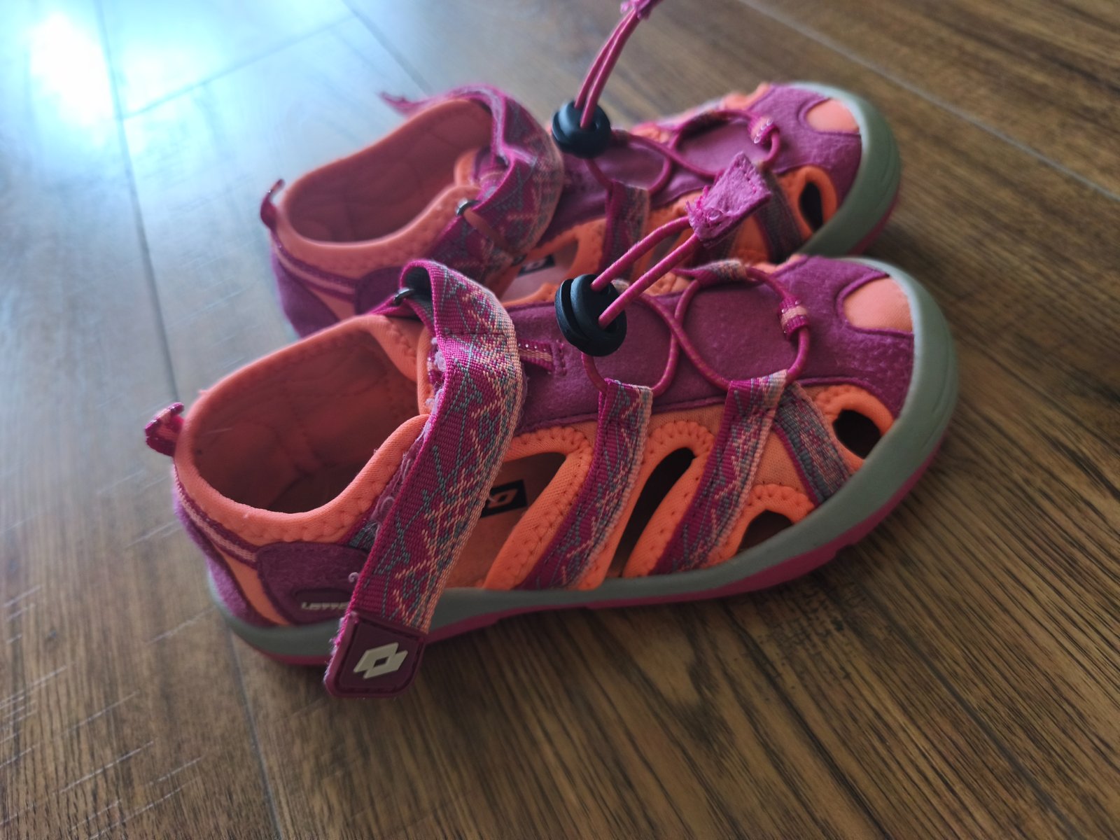 Predám málo nosené sandálky Lotto veľkosť 31. Výstelka je koža, sandálky pekne držia na nohe a veľmi pekne ukážu na nôžke. Sú málo nosené. Vnútorná dĺžka 21cm. Boli sme tak spokojný že sme ich mali...