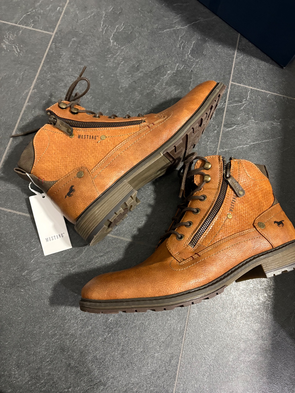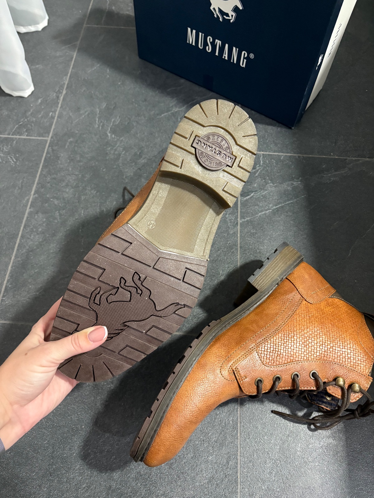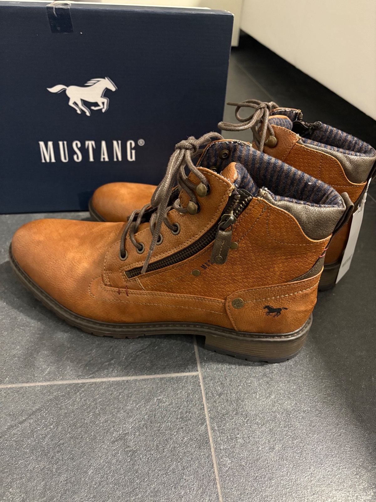 Predám nenosené pánske topánky. Značka Mustang. Objednané na About you. Veľkosť 44. Vhodné na nohu 27,5cm. Osobný odber Zvolen, poštou, packetou alebo DPD.