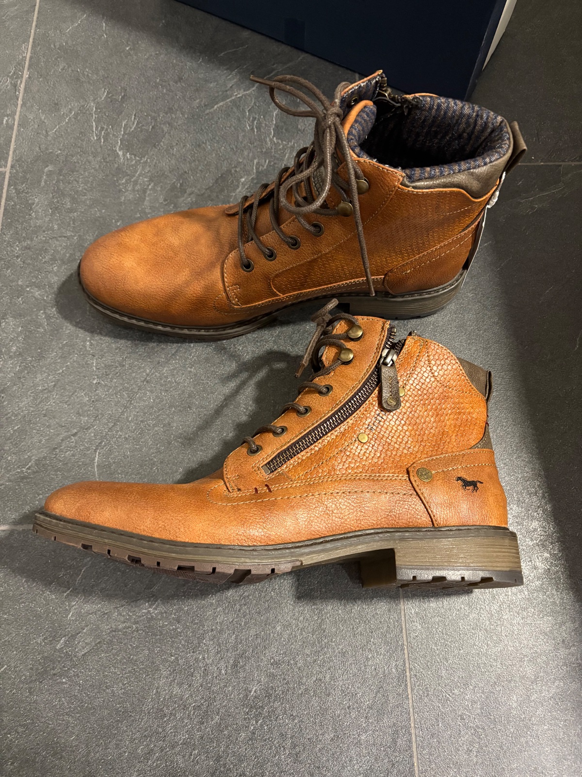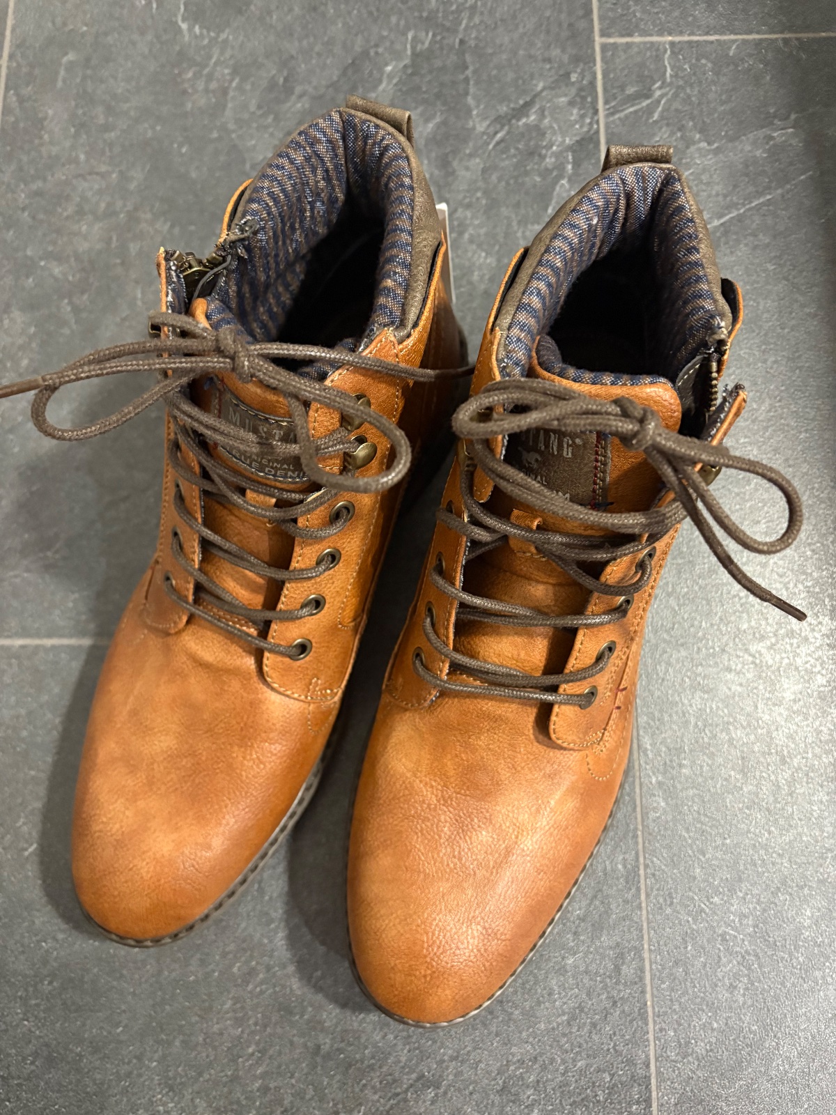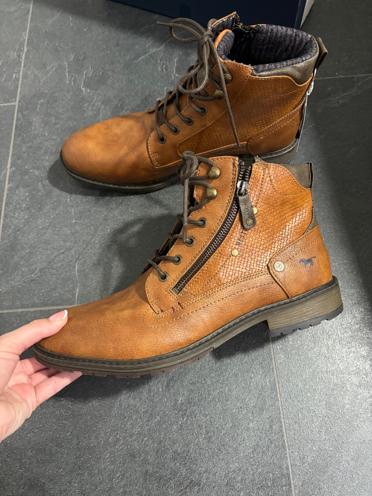 Predám nenosené pánske topánky. Značka Mustang. Objednané na About you. Veľkosť 44. Vhodné na nohu 27,5cm. Osobný odber Zvolen, poštou, packetou alebo DPD.