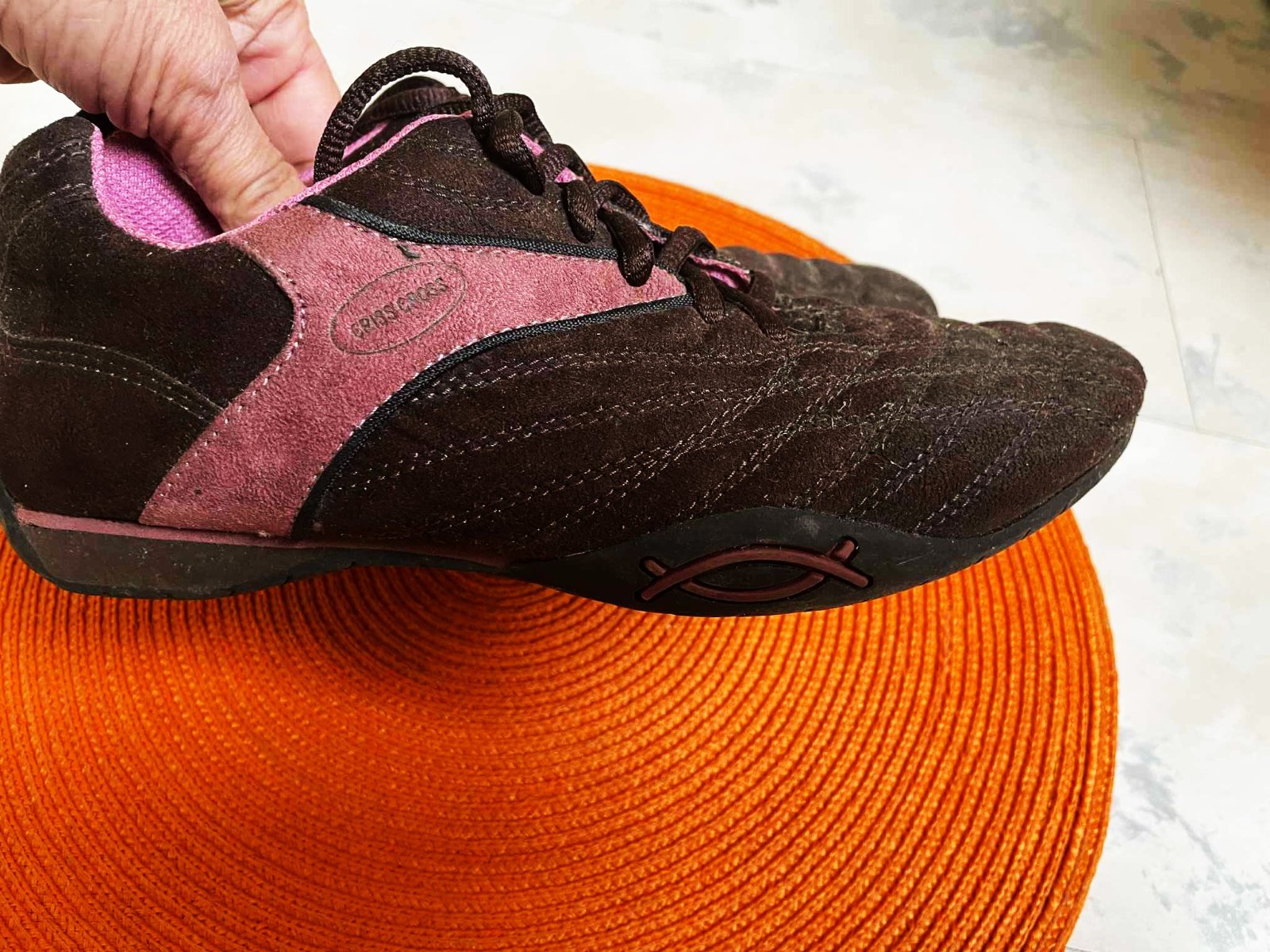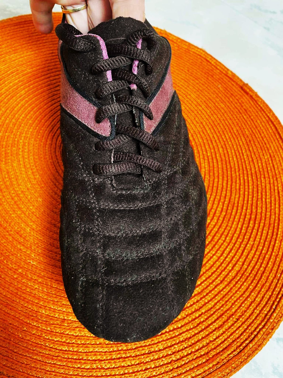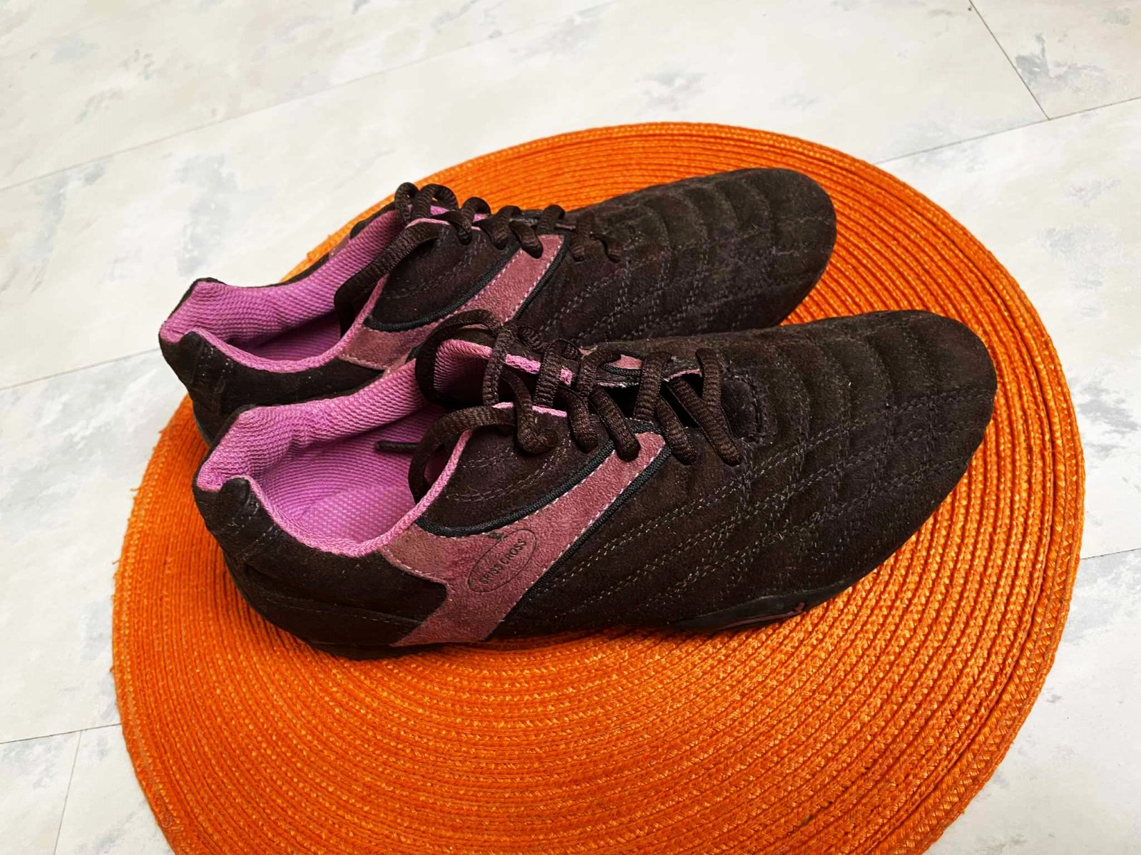 ľahúčke tenisky z umelého semišu,výborne sa udržiavajú,vnútorná dlžka je 23 cm,výborne sedia na nohe,zaujímavá hnedo-staro ružová kombinácia farieb,min. nosené