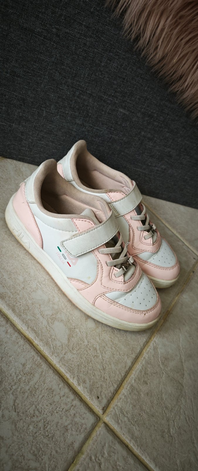Biele tenisky Fila, vo veľmi dobrom stave, málo nosené. Kupované na jar 2024. Na suchý zips