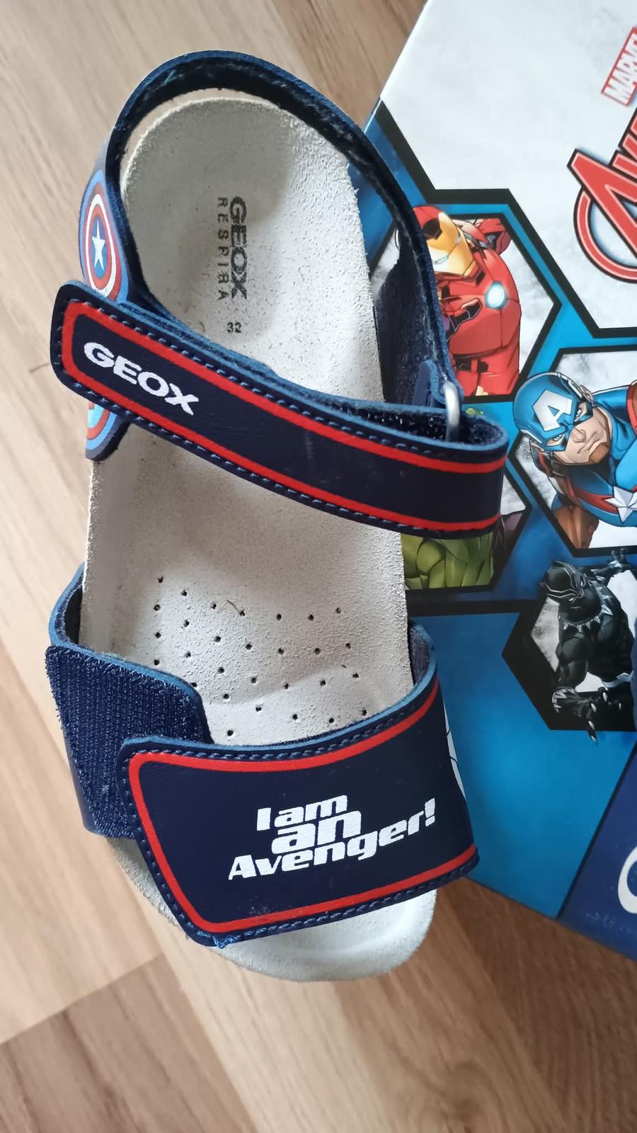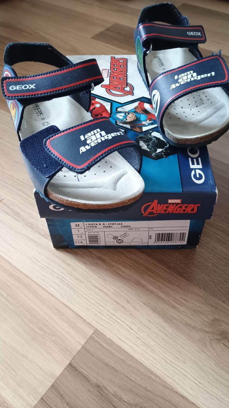 Posunieme ďalej sandále Avengers, s koženou tvarovanou stielkou. Minimálne nosené. Veľkosť 32 (vd 18,5cm)