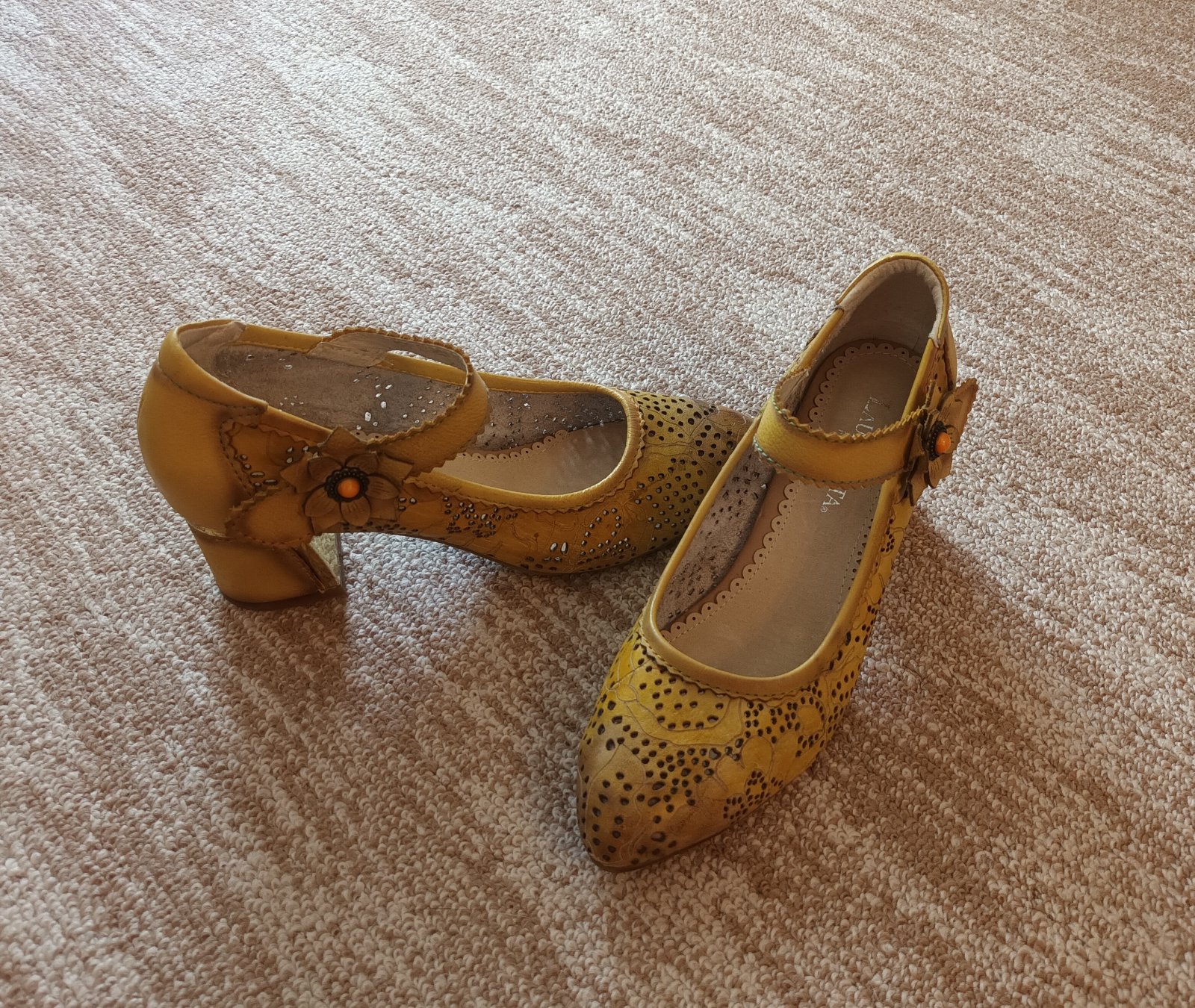 Lodičky zn. Laura Vita, veľ.37, farba žltohnedá, výška podpätku 4 cm, vnútorná dĺžka 24,5 cm, výborný stav.