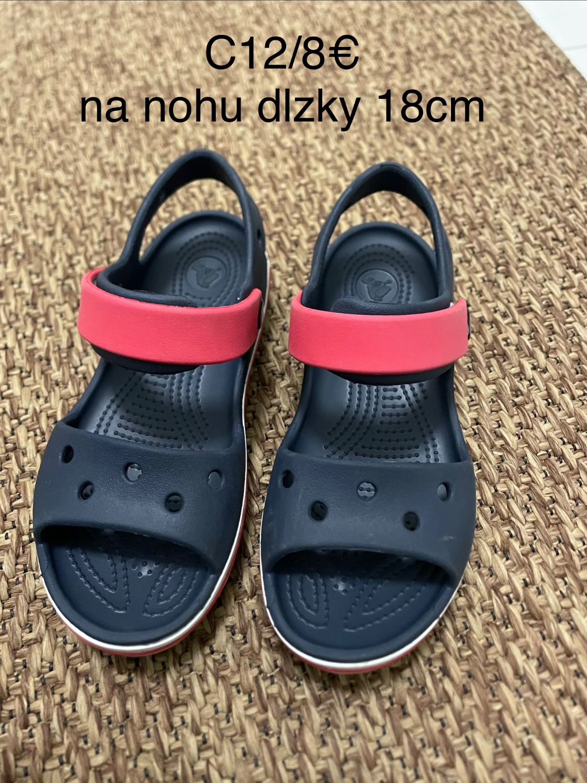 Predám sandále crocs velmi málo nosené ako nové. Velkosť c12, čiže naše 29-30,vnútorná dĺžka 18,3 cm.Cena je 12 euro s obyčajným poštovným druhou triedou.