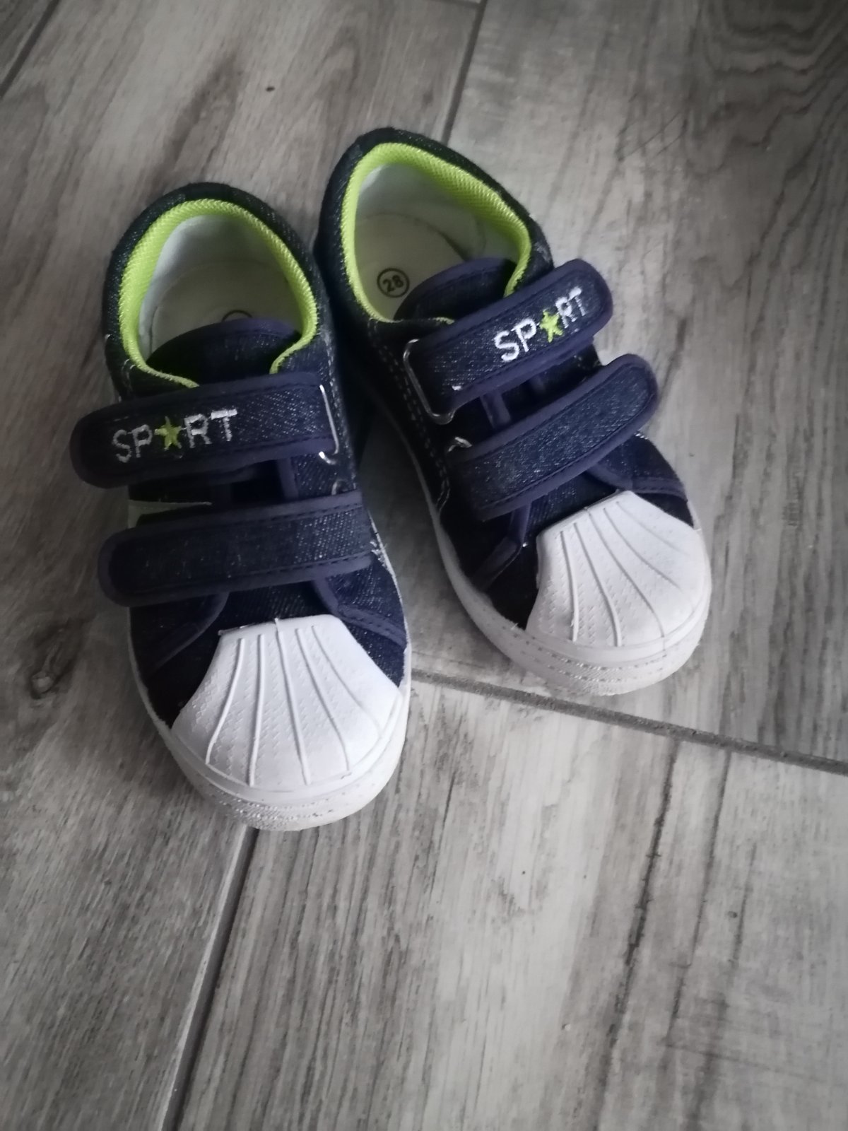 Tenisky vo veľmi peknom stave. Vnútorná dĺžka 16,5cm. Sandálky si treba miestami dolepiť, inak tiež super.