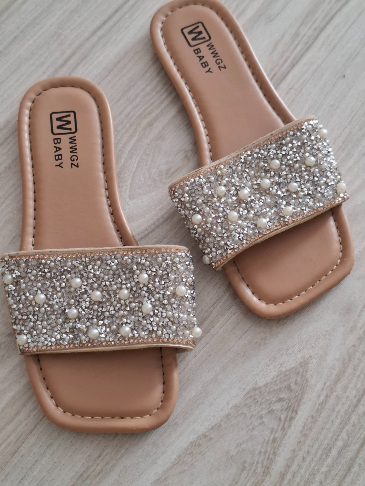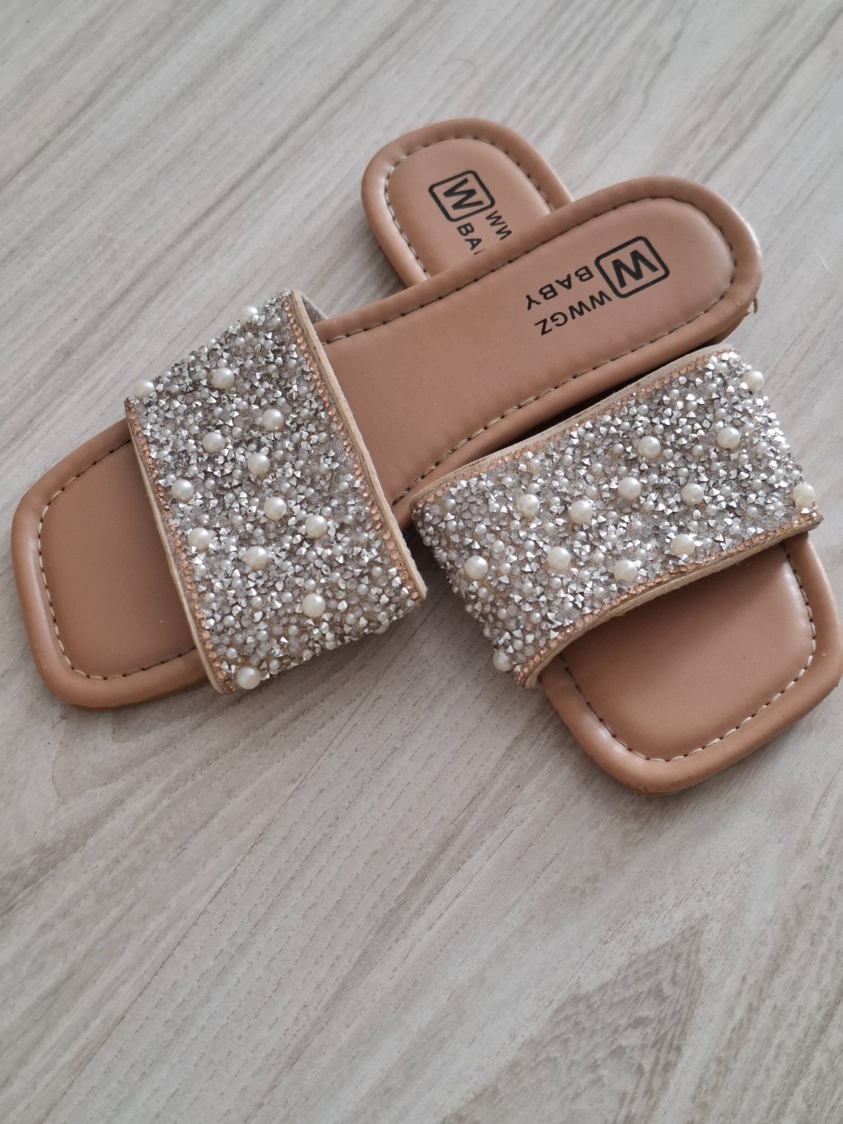 Krásne šľapky trblietavé s perličkami. Pekný stav.