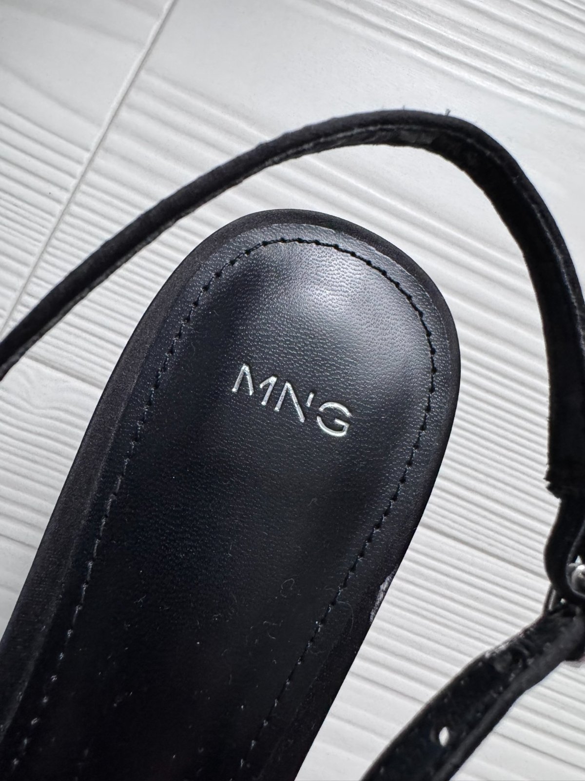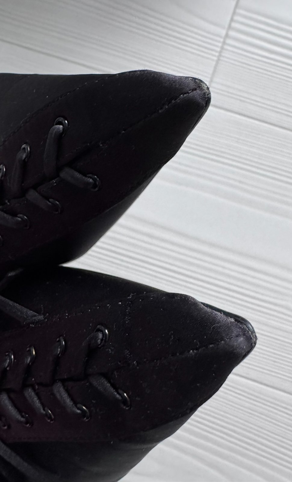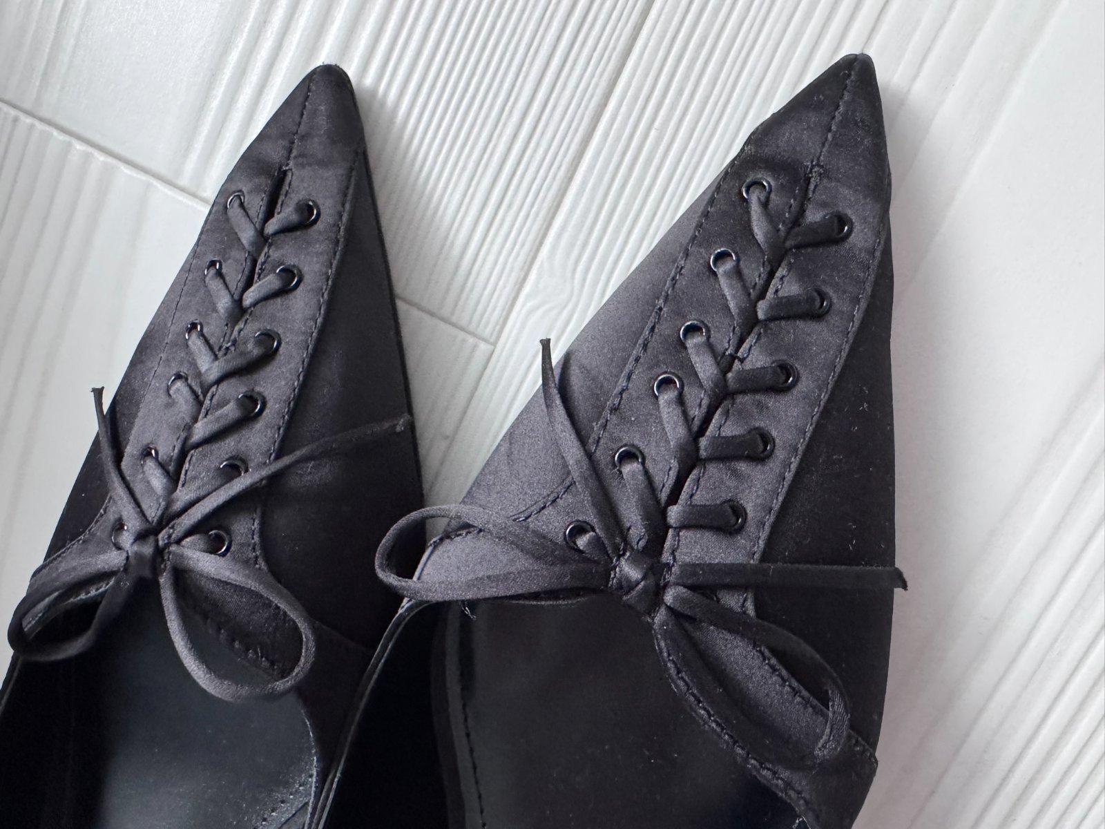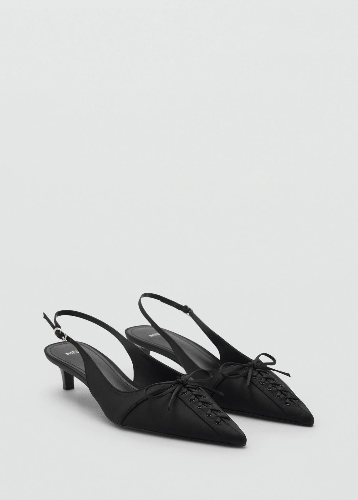 Čierne lodičky s otvorenou pätou a ozdobným šnurovaním vpredu.