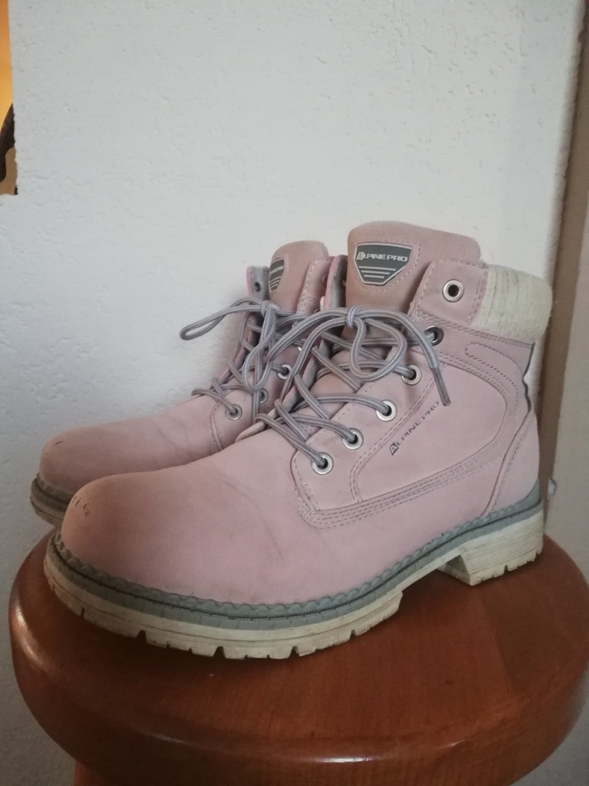 Prechodne mierne vyteplene topanky, nosene jednu sezonu. Snorovacie, mierne odrete spice, stav ako na foto. Dlzka 24,5cm. Cena s postovnym 15Eur.