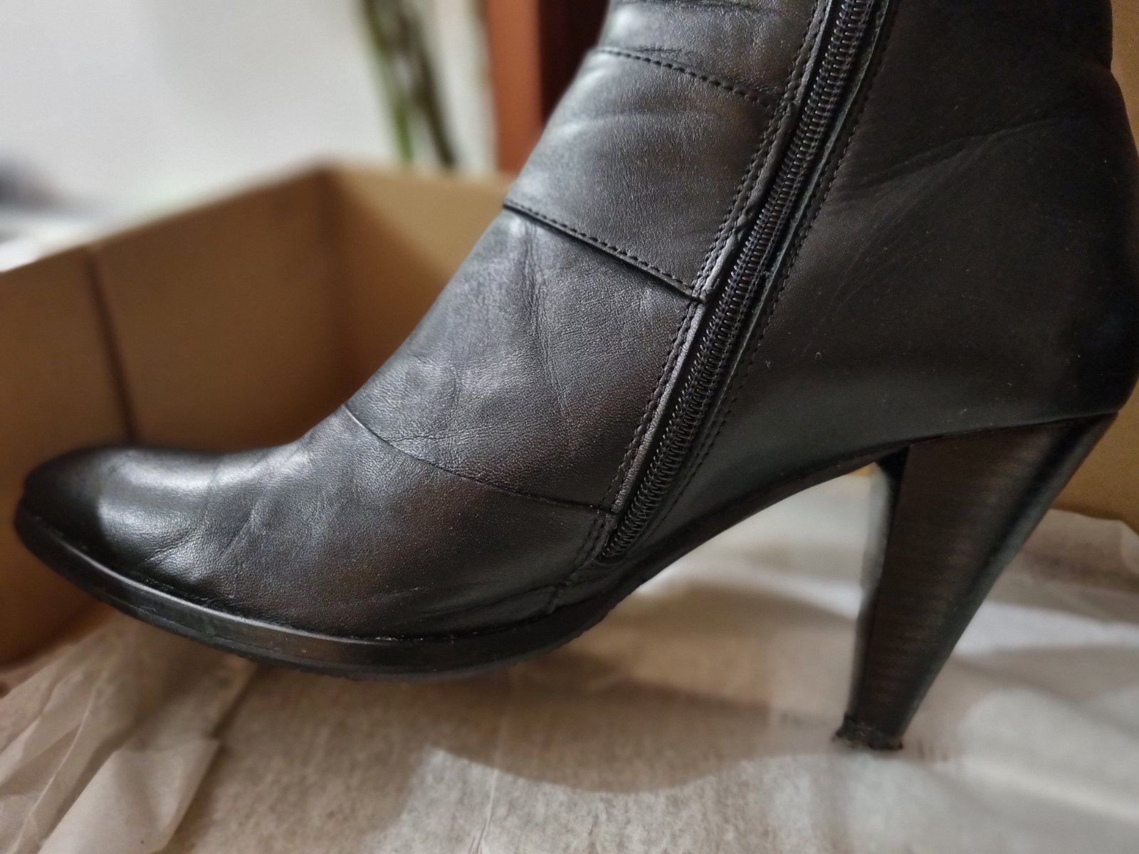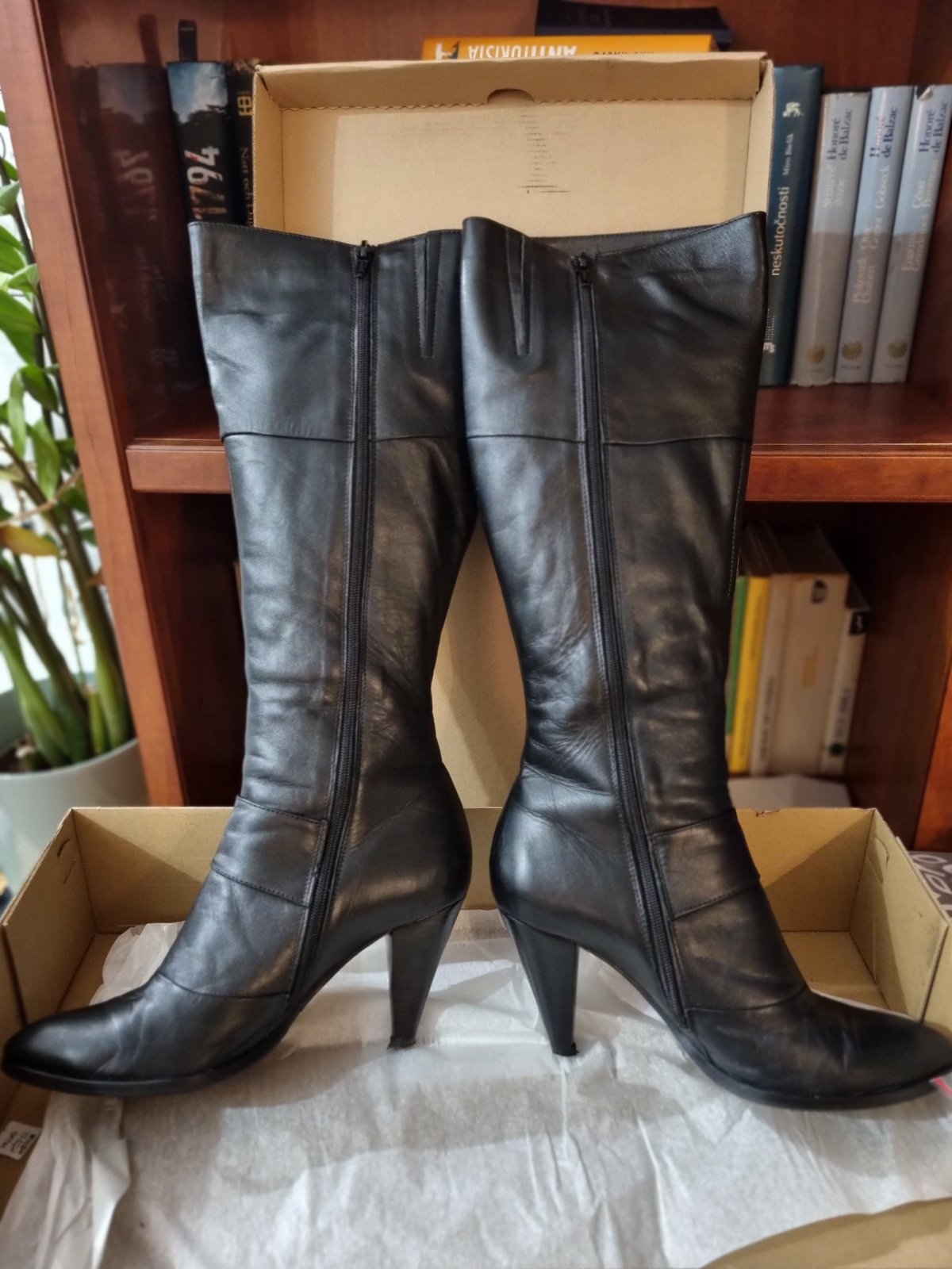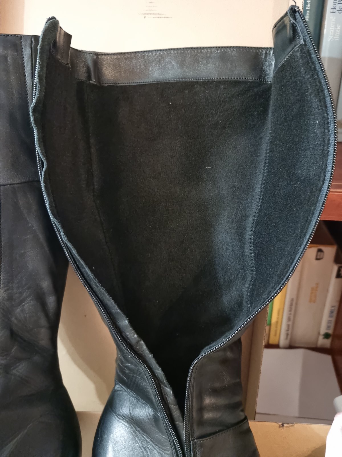 Kožené čižmy zn HUJO, veľ.39 (veľkosť zodpovedá číslovaniu). Podpätok 8 cm. Nosené príležitostne, keďže sú na podpätku, ale po zlomenine priehlavku už nevyužijem.