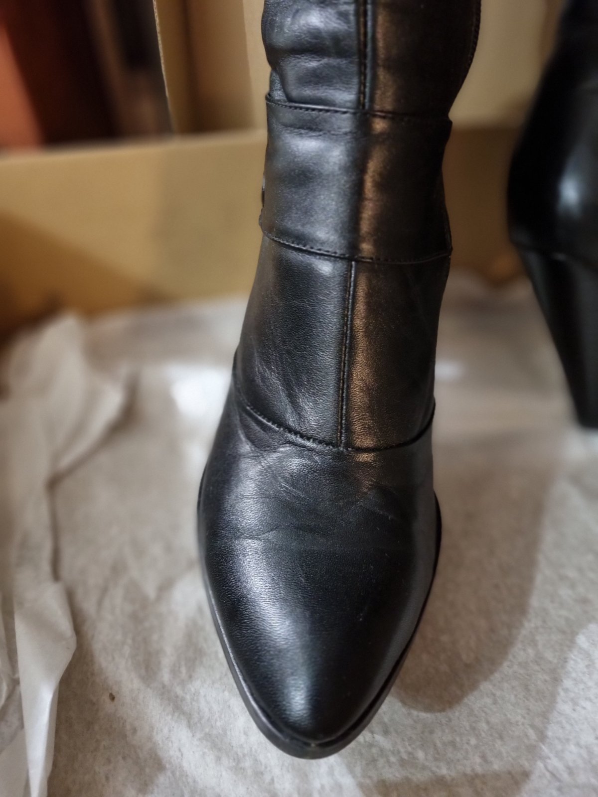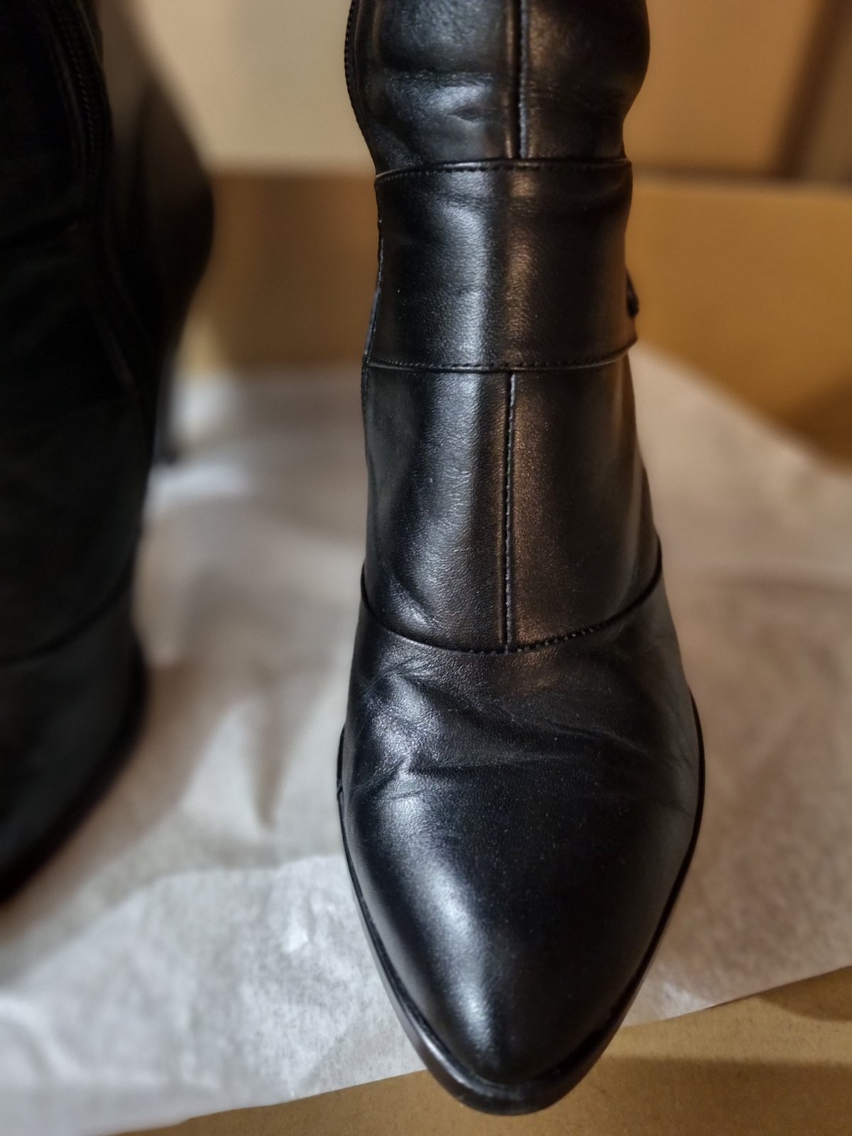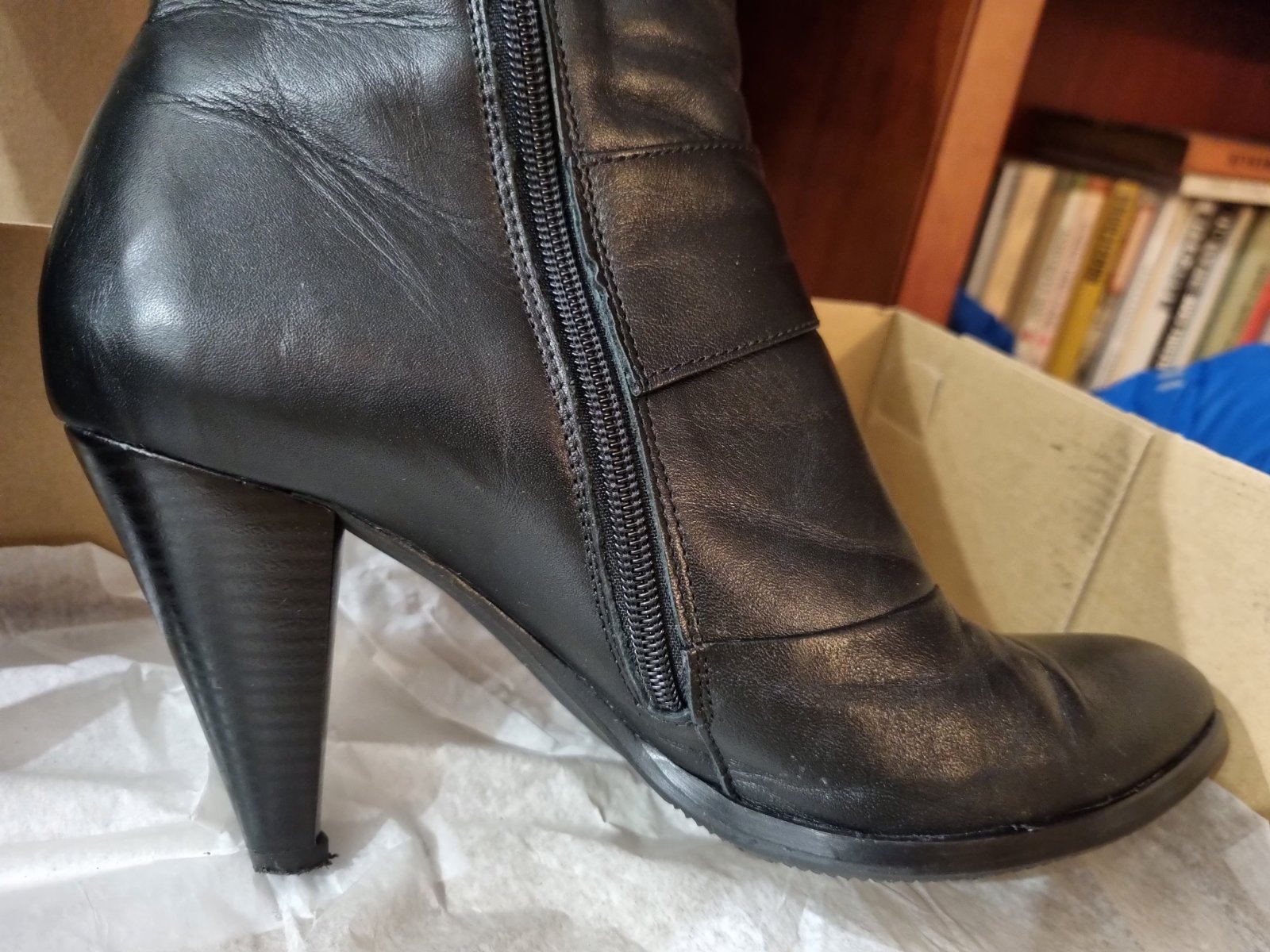 Kožené čižmy zn HUJO, veľ.39 (veľkosť zodpovedá číslovaniu). Podpätok 8 cm. Nosené príležitostne, keďže sú na podpätku, ale po zlomenine priehlavku už nevyužijem.
