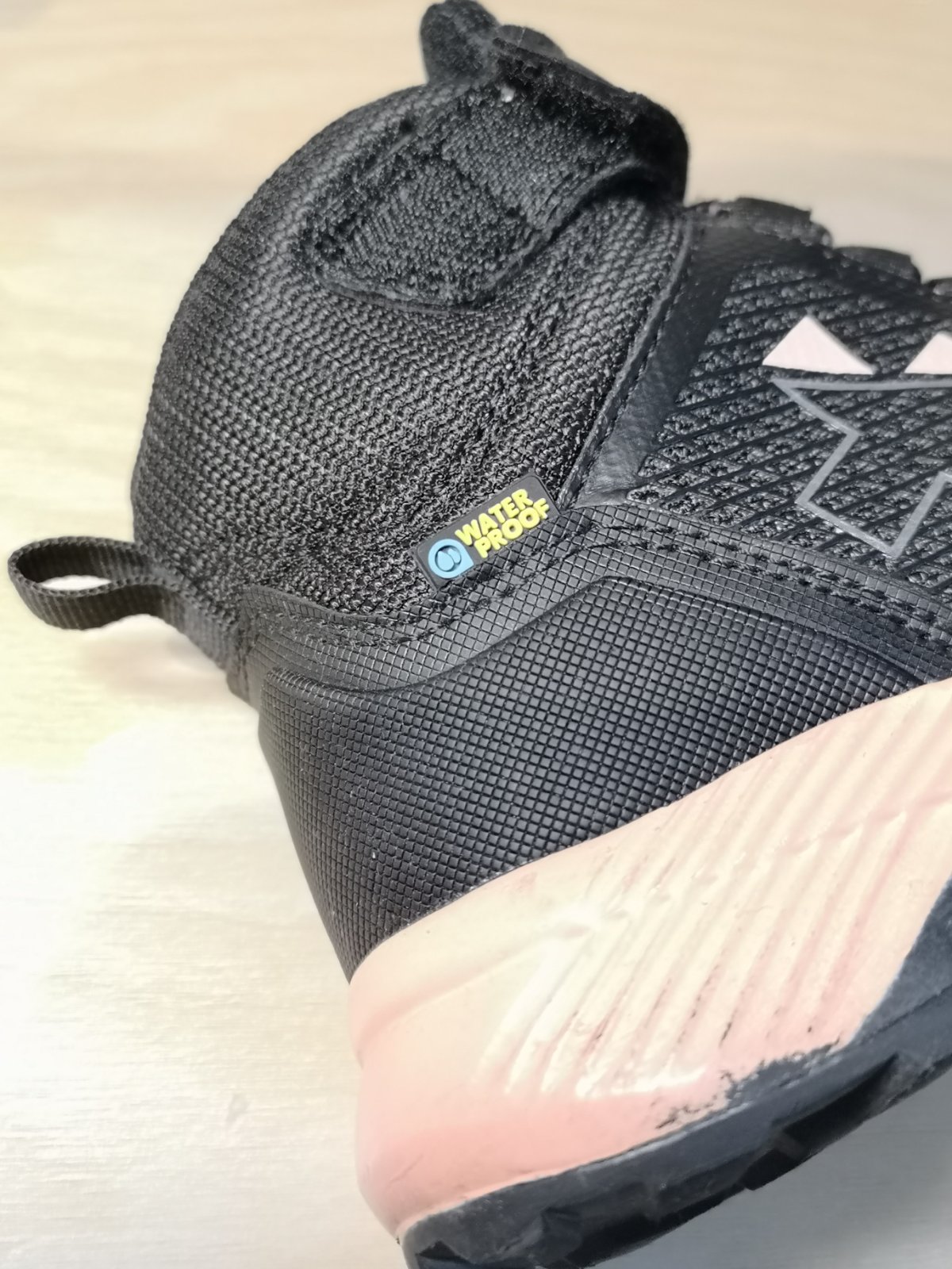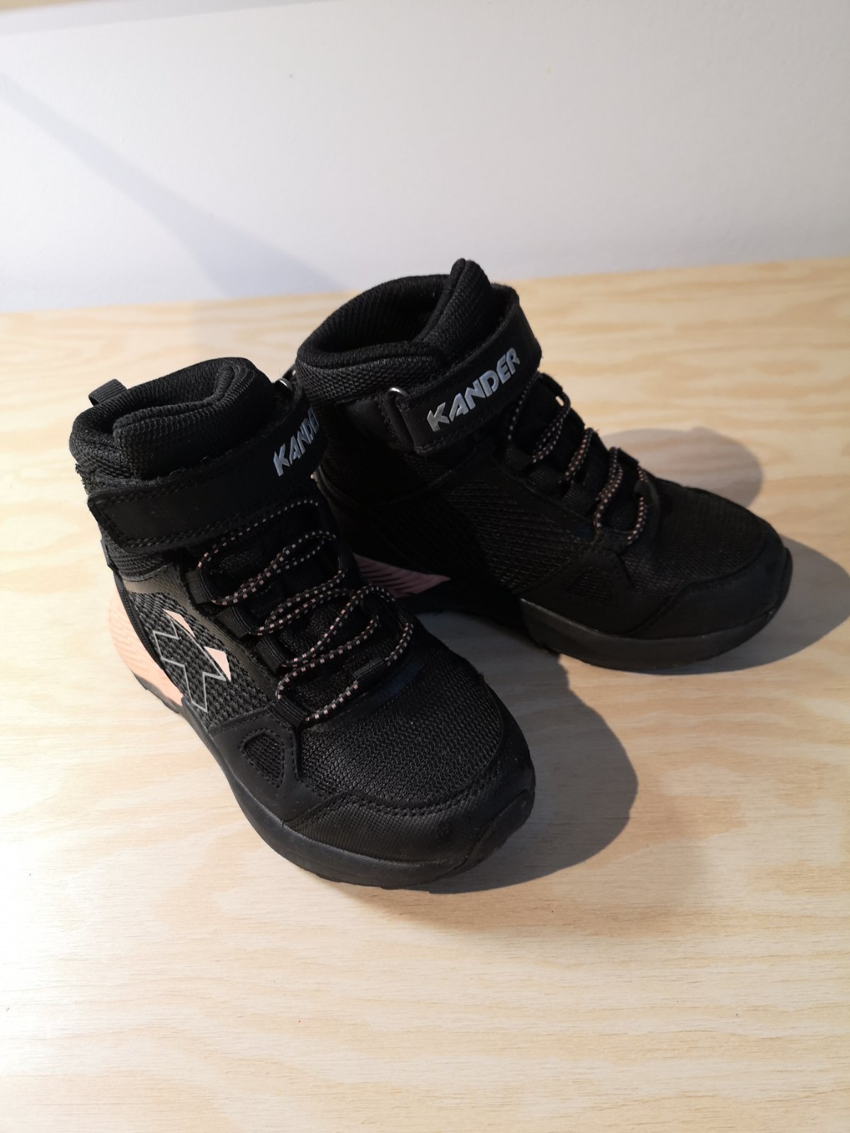 Nepremokavé kotníkové topánky. V dobrom stave. Trochu ošúchaná ružová časť podrážky inak bez závad.