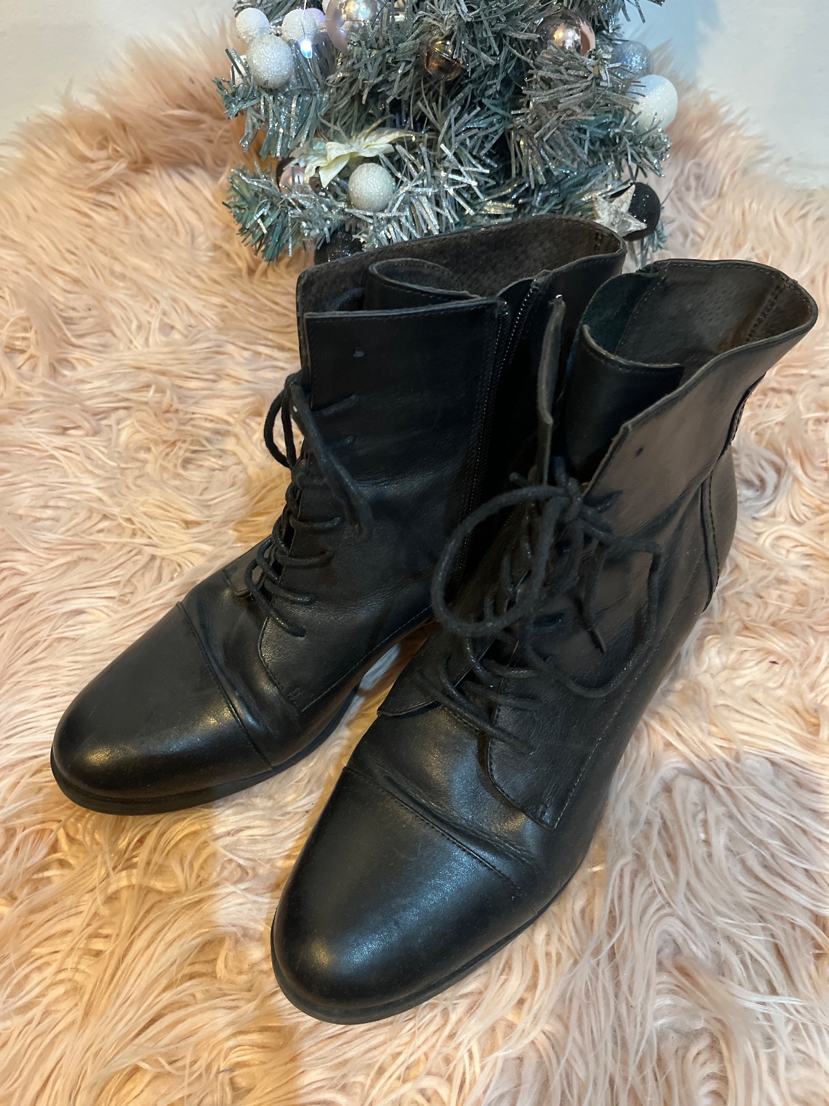 Aldo členkové čižmy, raz obuté. Z vnútornej strany sa mi podarilo ich trochu oškrieť (na fotke). Veľkosť 41.