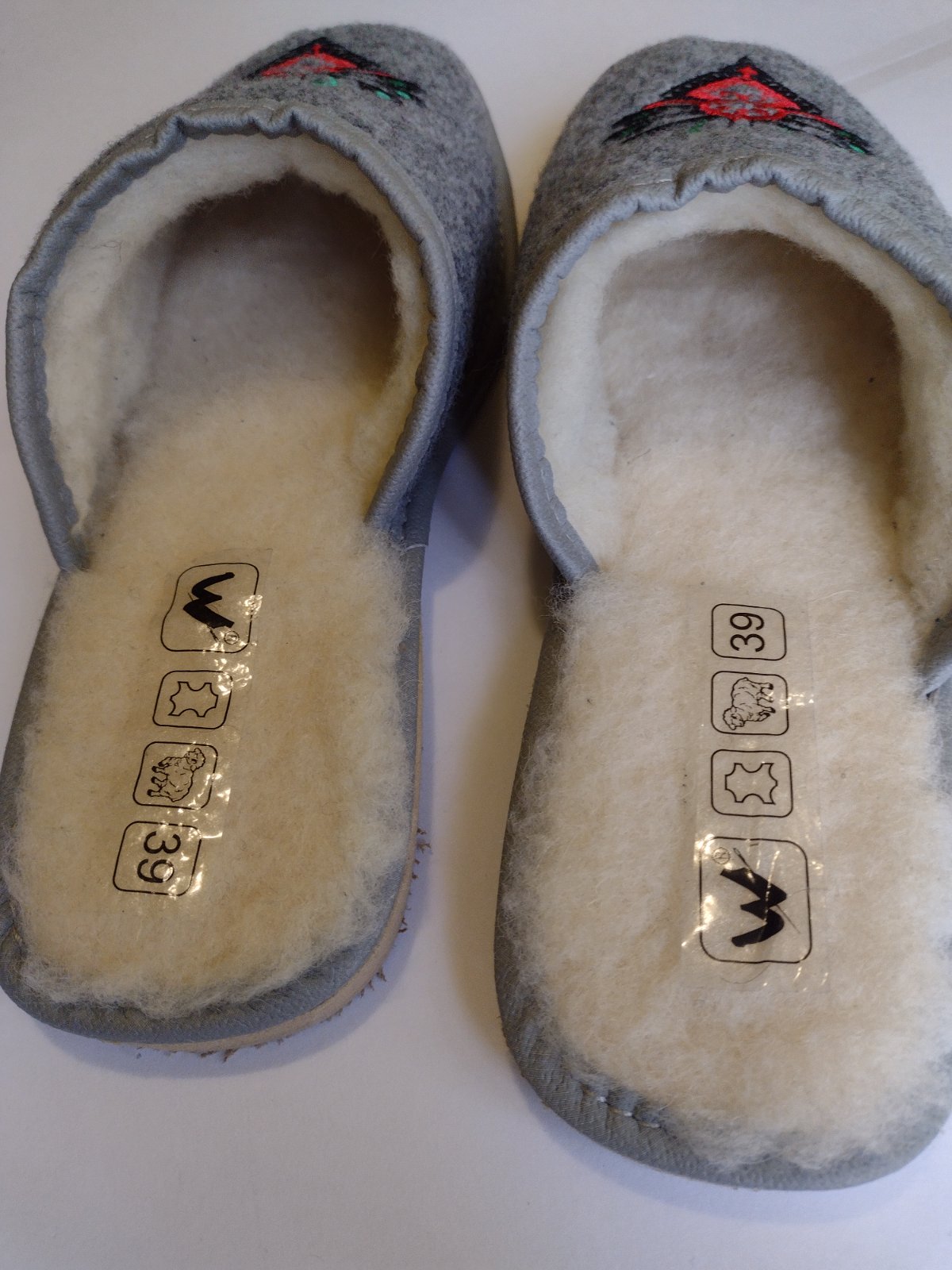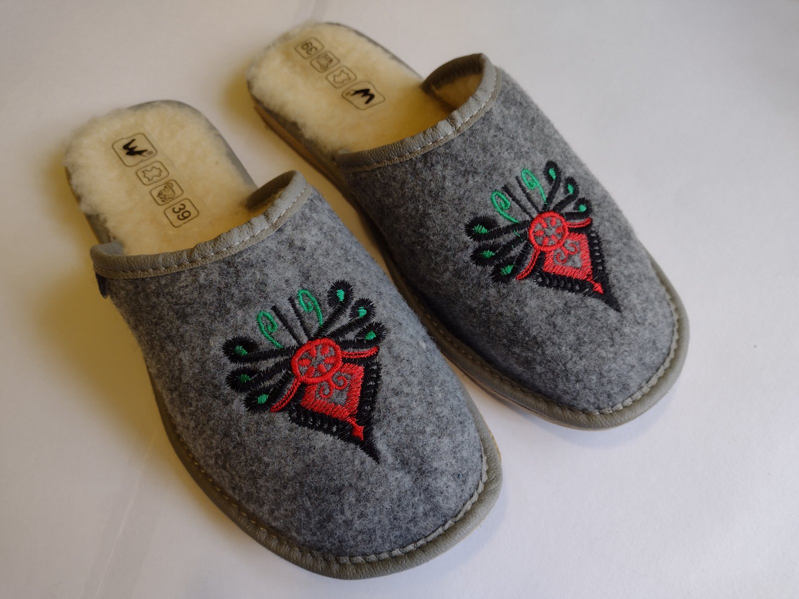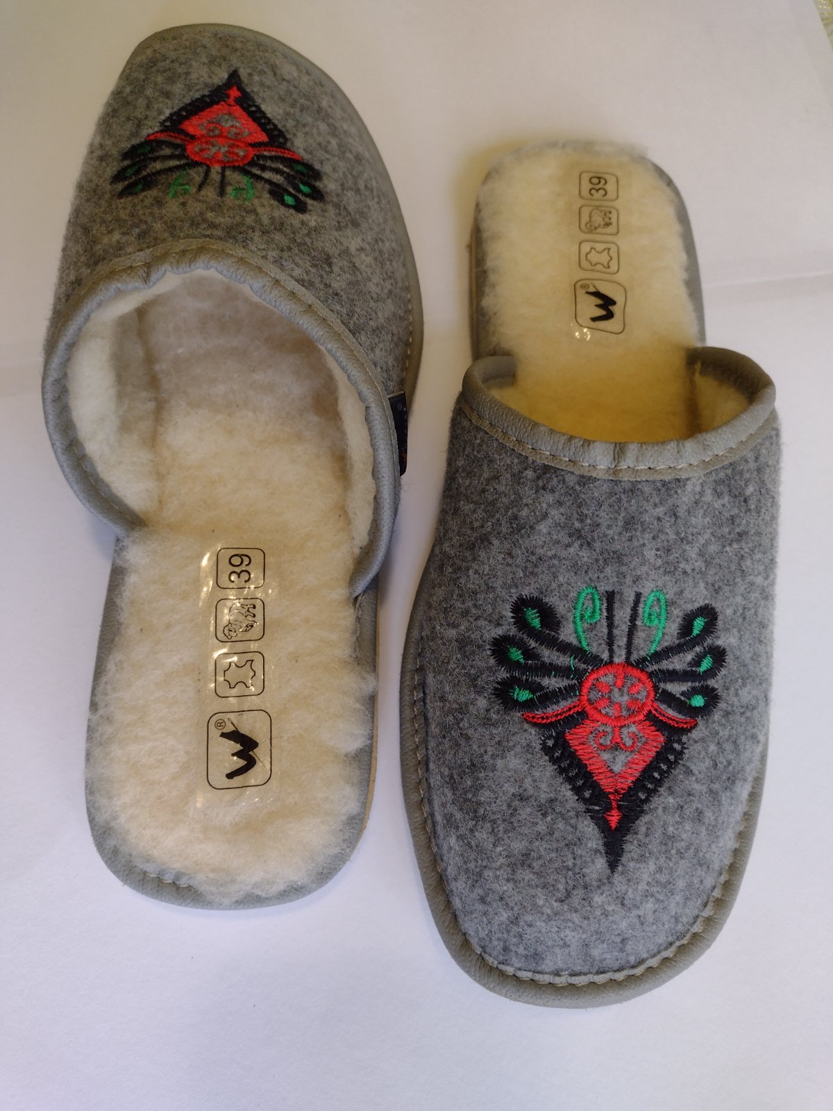 Domáca obuv / papuče zateplené ovčou vlnou s výšívaným vzorom vo veľkosti 39.
