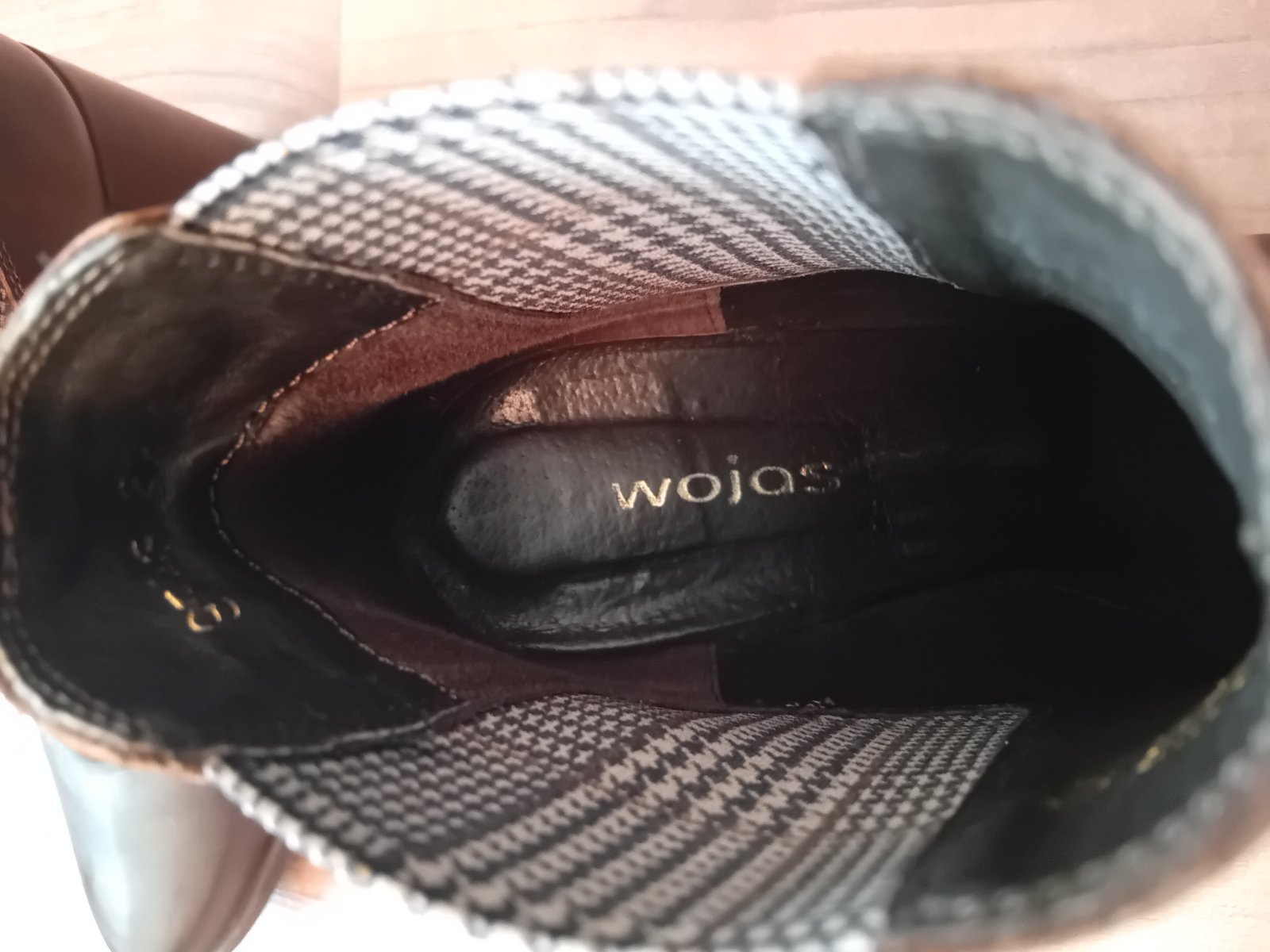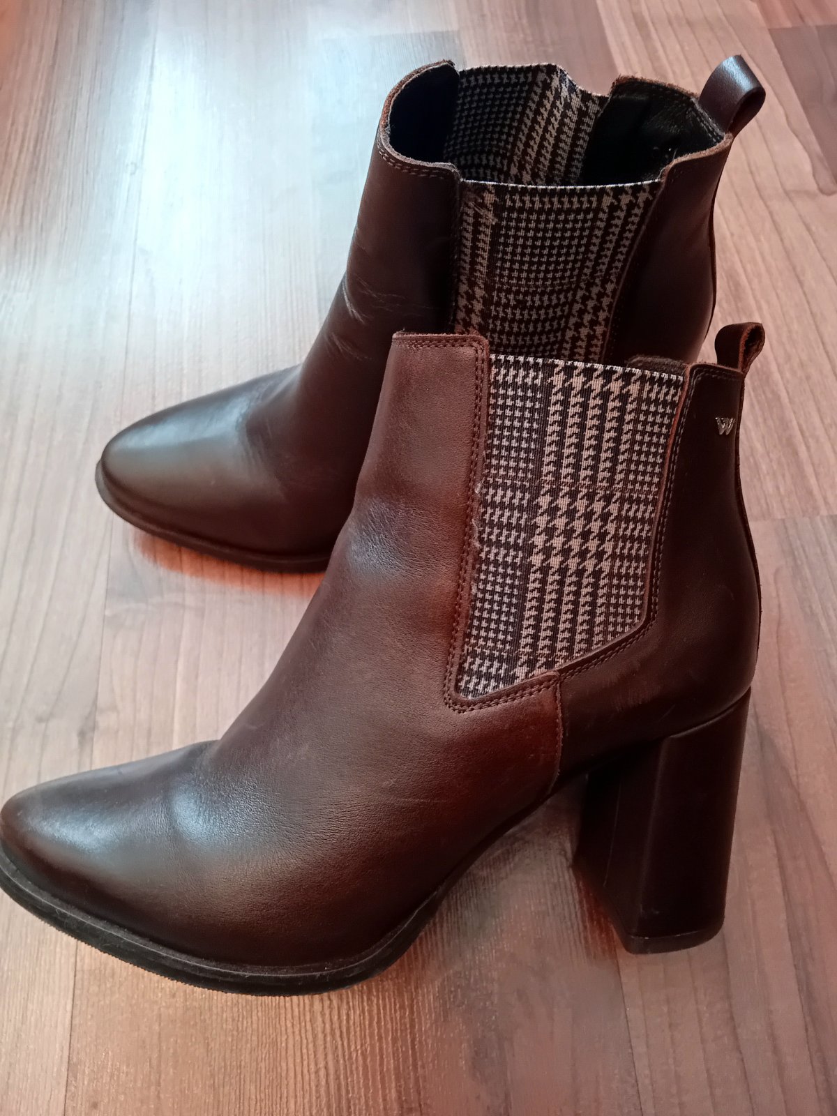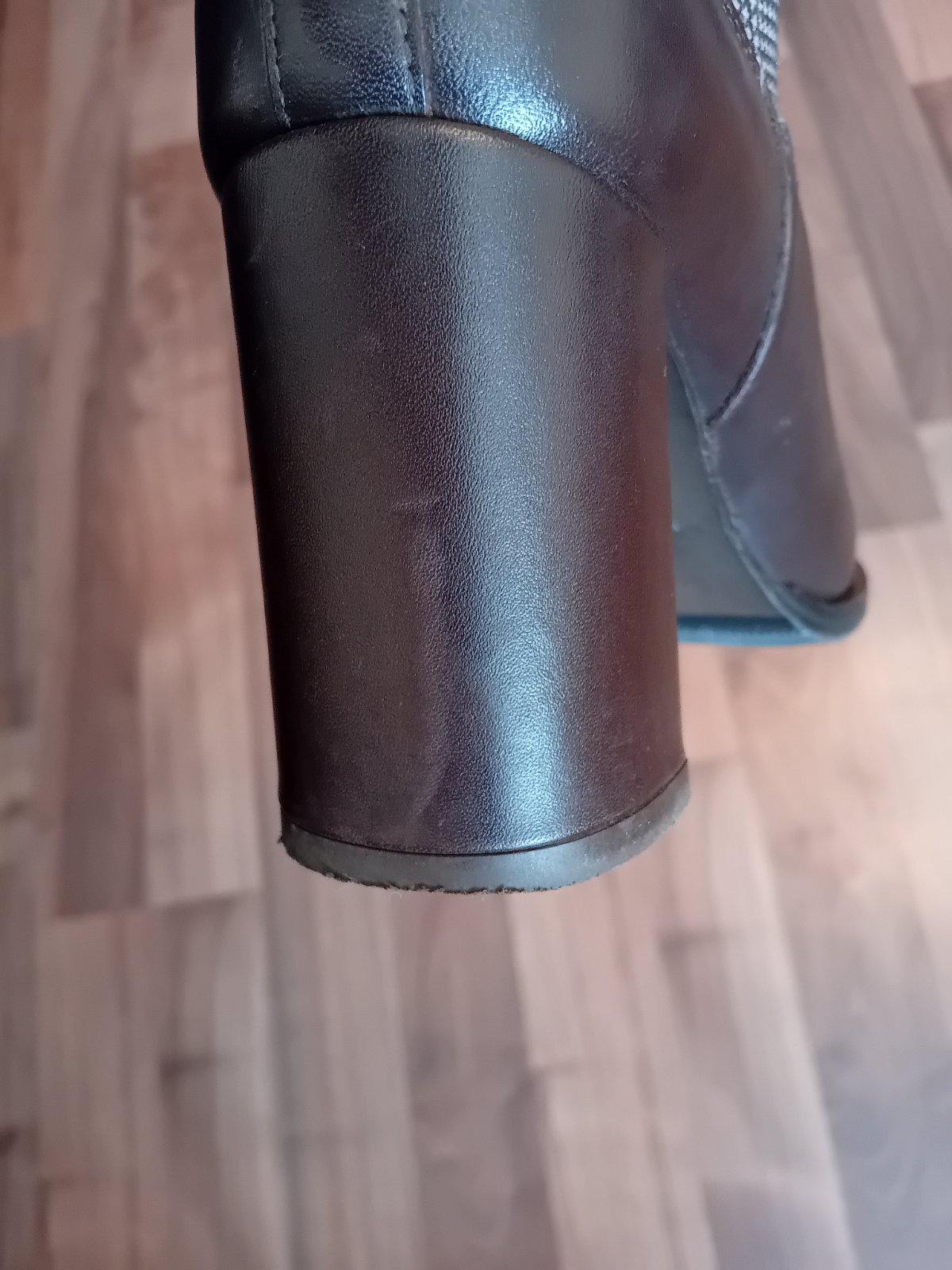 Kozene damske cizmicky, obute max.3x, co je vidno aj na podrazke. Su prechodne, lahko sa obuvaju. Vyska opatku 8 cm. Podrazka ma cca 8 mm. Aj ked malinko obute na spicke sa podarilo malinko suchnut. Ale naozaj minimalne. Na jednom opatku slaby bledohnedy pasik. Nie je ale zodraty. Naozaj malo nosene. Ale fotim vsetko, co som zahliadla.