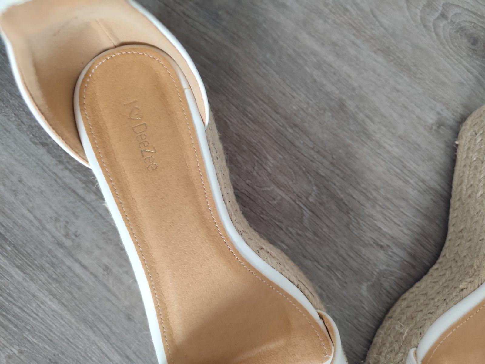 pohodlne bielokremove sandalky uvadzana velkost 38 (ja mam 39 a boli mi dobre) na plnom 6 cm podpatku zn.Tamaris, makkucka koza, kupovane ku svadobnym satam, ale nakoniec som ich mala obute len poc...