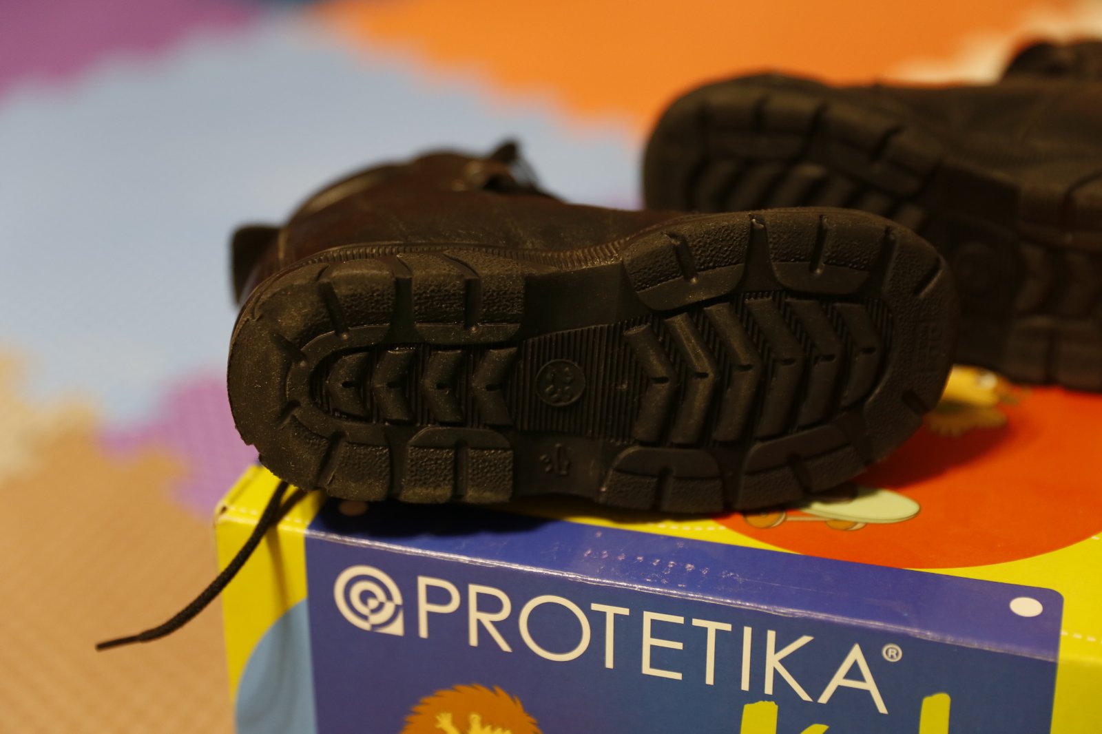 Ponúkam nové čierne zimné topánky na šnúrky. Topánky sú vibramového štýlu. Nosené cca 5 dní, vpredu mierne ošúpaná koža - okopaná o schody. Neznižuje to funkčnosť topánky. č. 23 (23 1/2) Výrobca: Protetika.