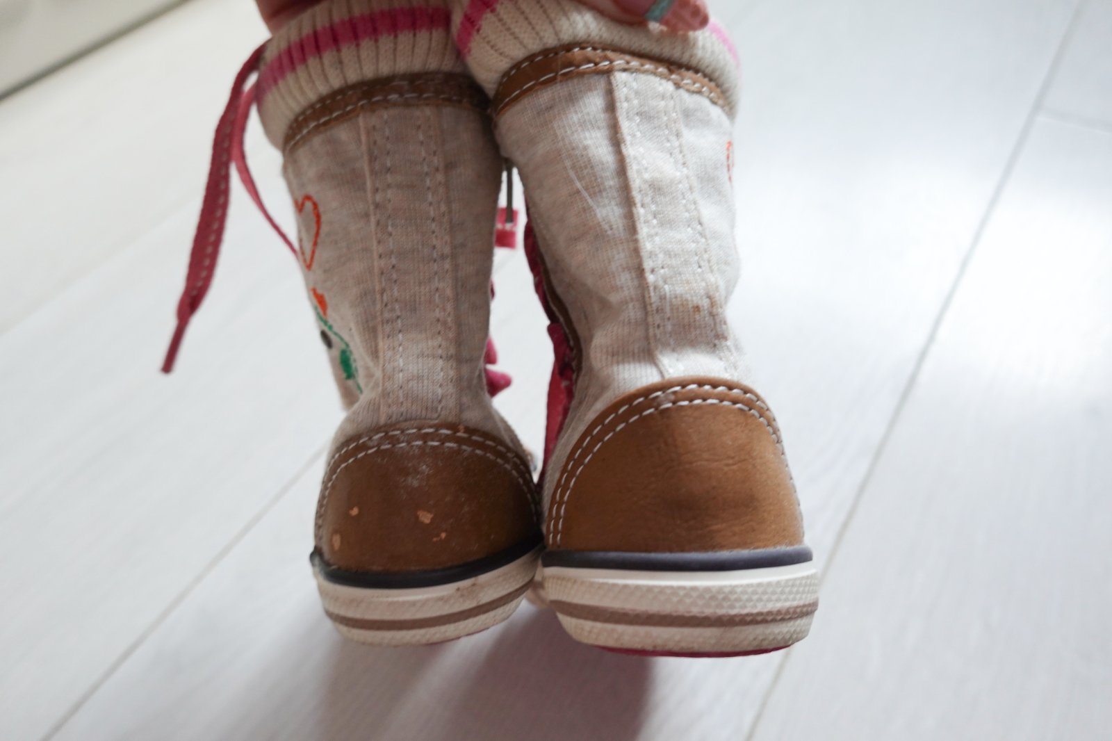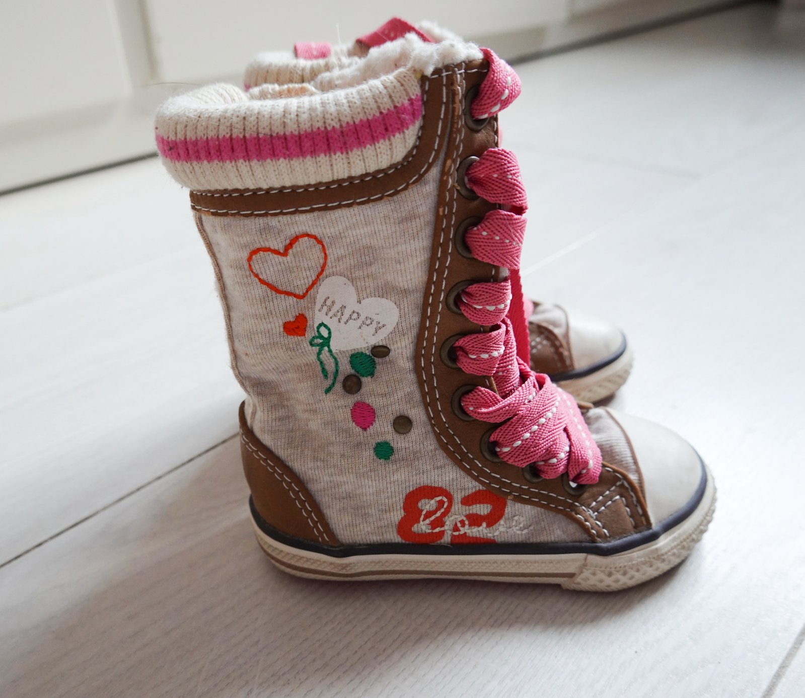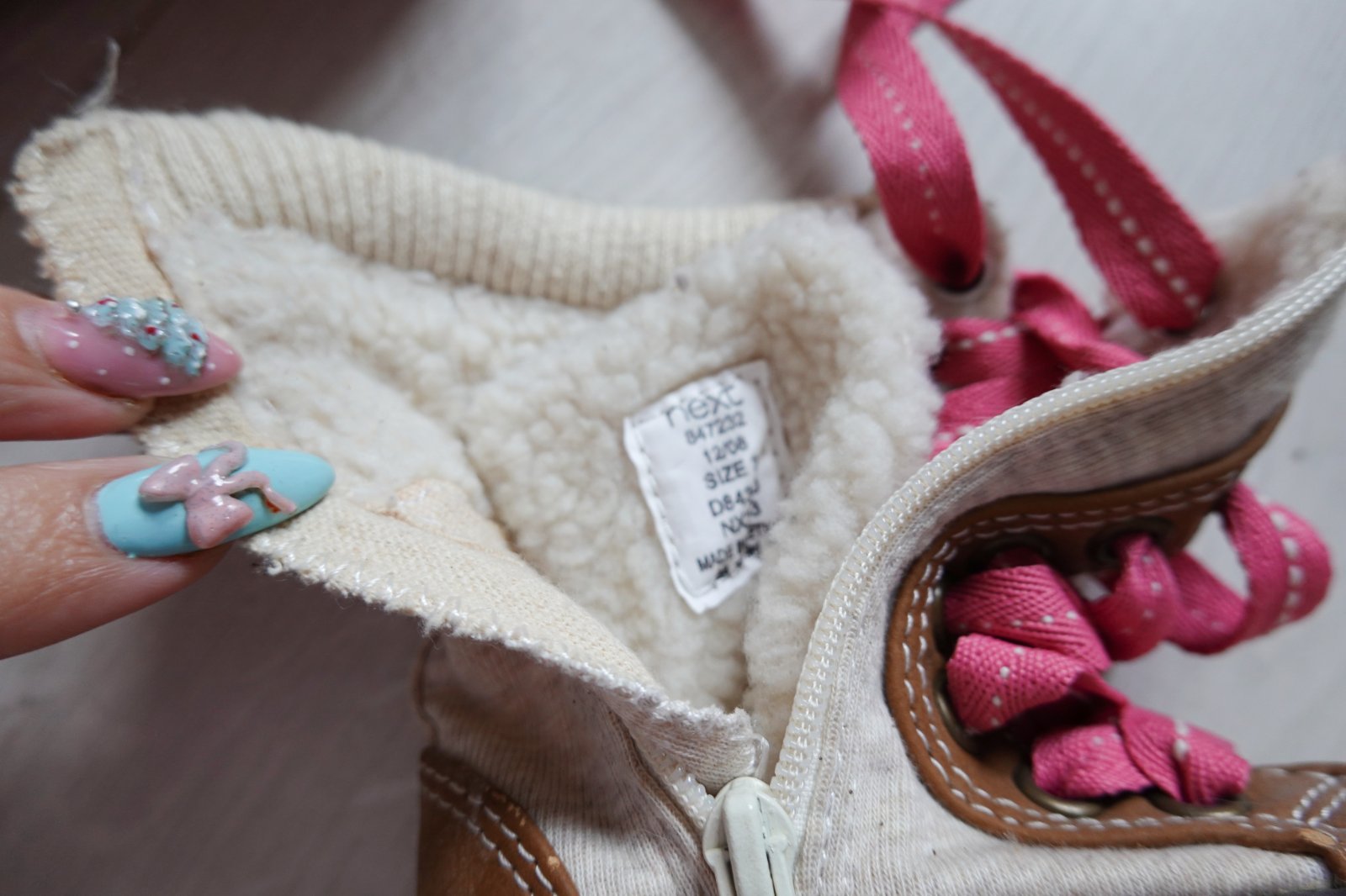 sú v super stave,akurát malej sa podarilo vzadu trocha oškrieť tú hnedú časť-viď foto,nie je to nič vážne.Vnútri teplá kožušinka