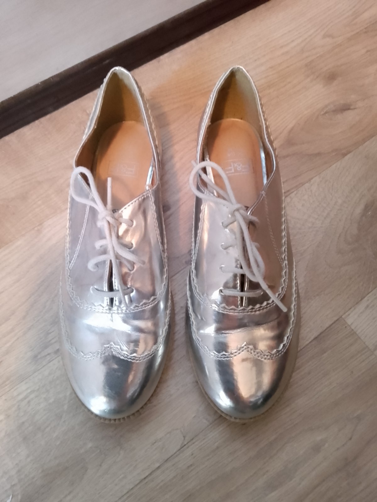 Predám strieborné lodičky na opätku značky Toscana, kupované v obchode Bossanoha veľkosť 36. Lodičky sú bez poškodení obuté raz. Cena 20€