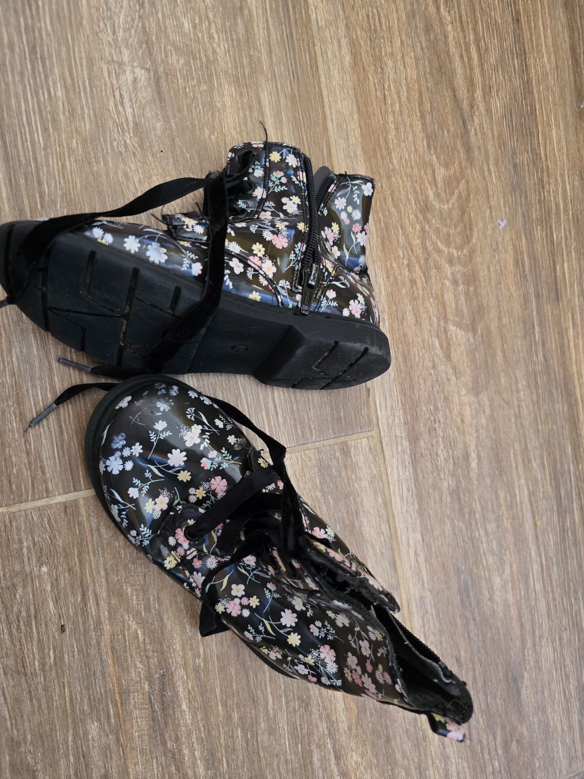 Top stav, 1 x obute, kozenne topanky / cizmy. Vnutorna dlzka 19 cm.